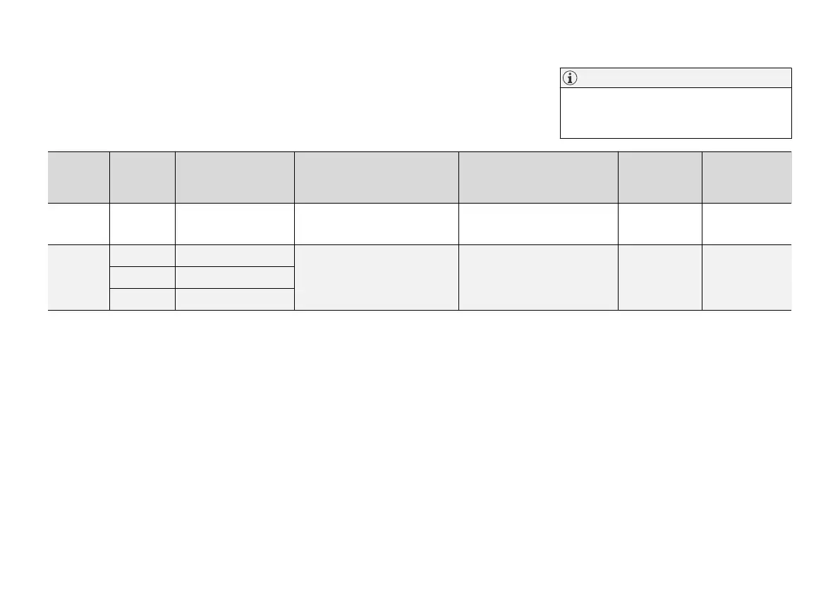 Table for location of ISOFIX child