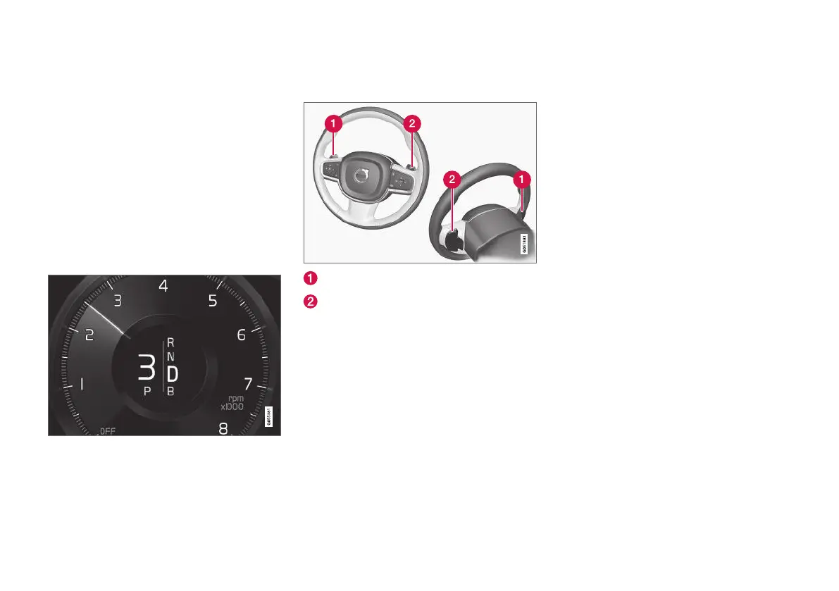 Driver display when changing gear with steering wheel