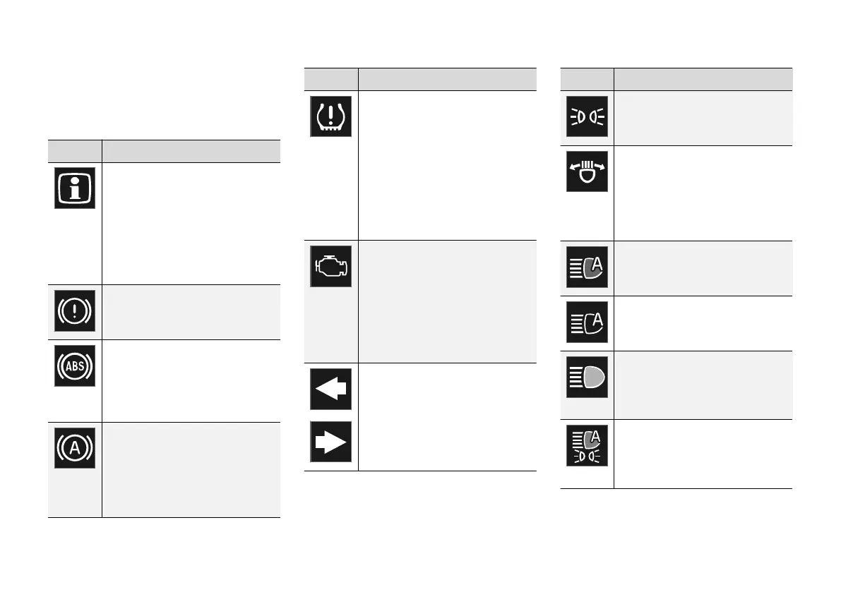 The indicator symbols alert the driver that a func-