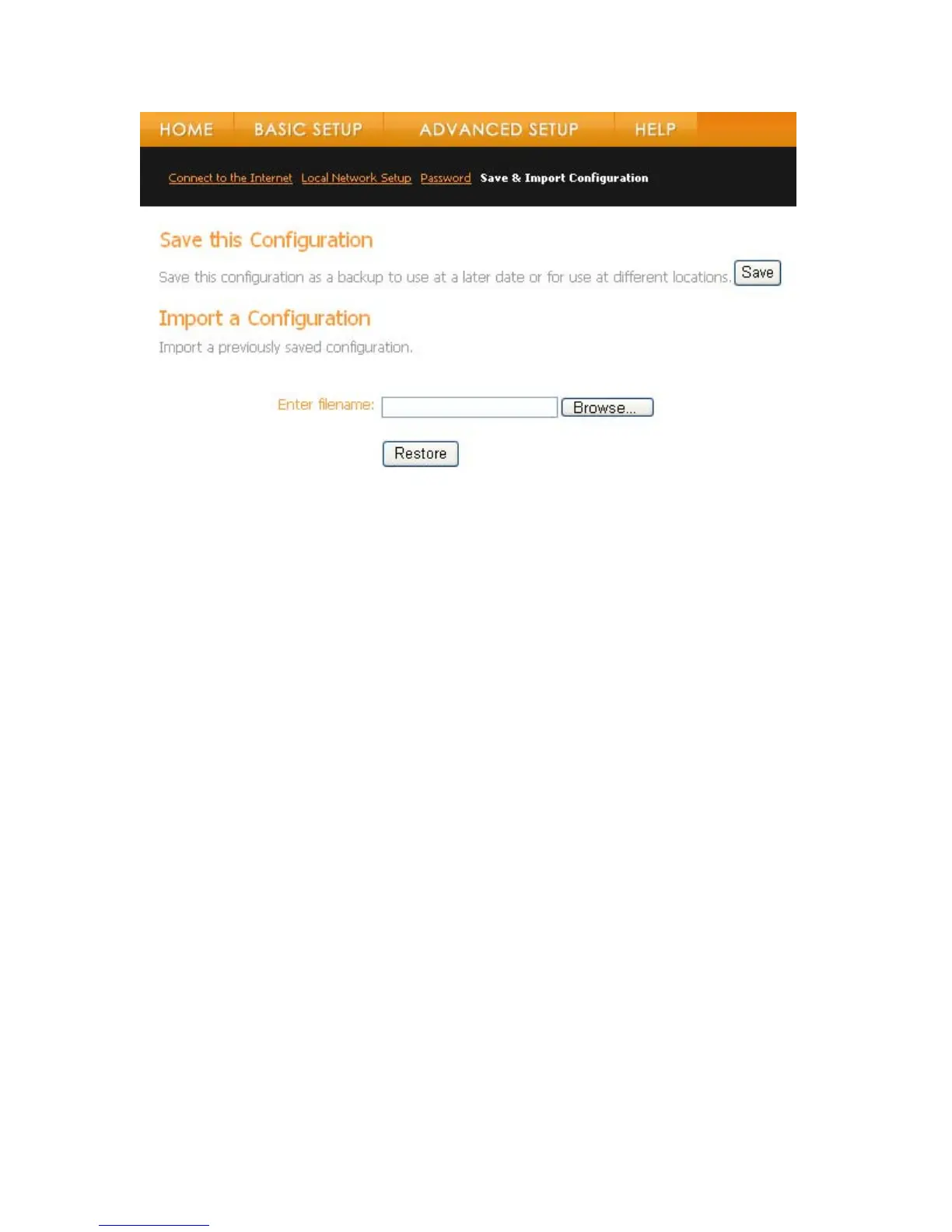 saved configuration you need to import the configuration file: