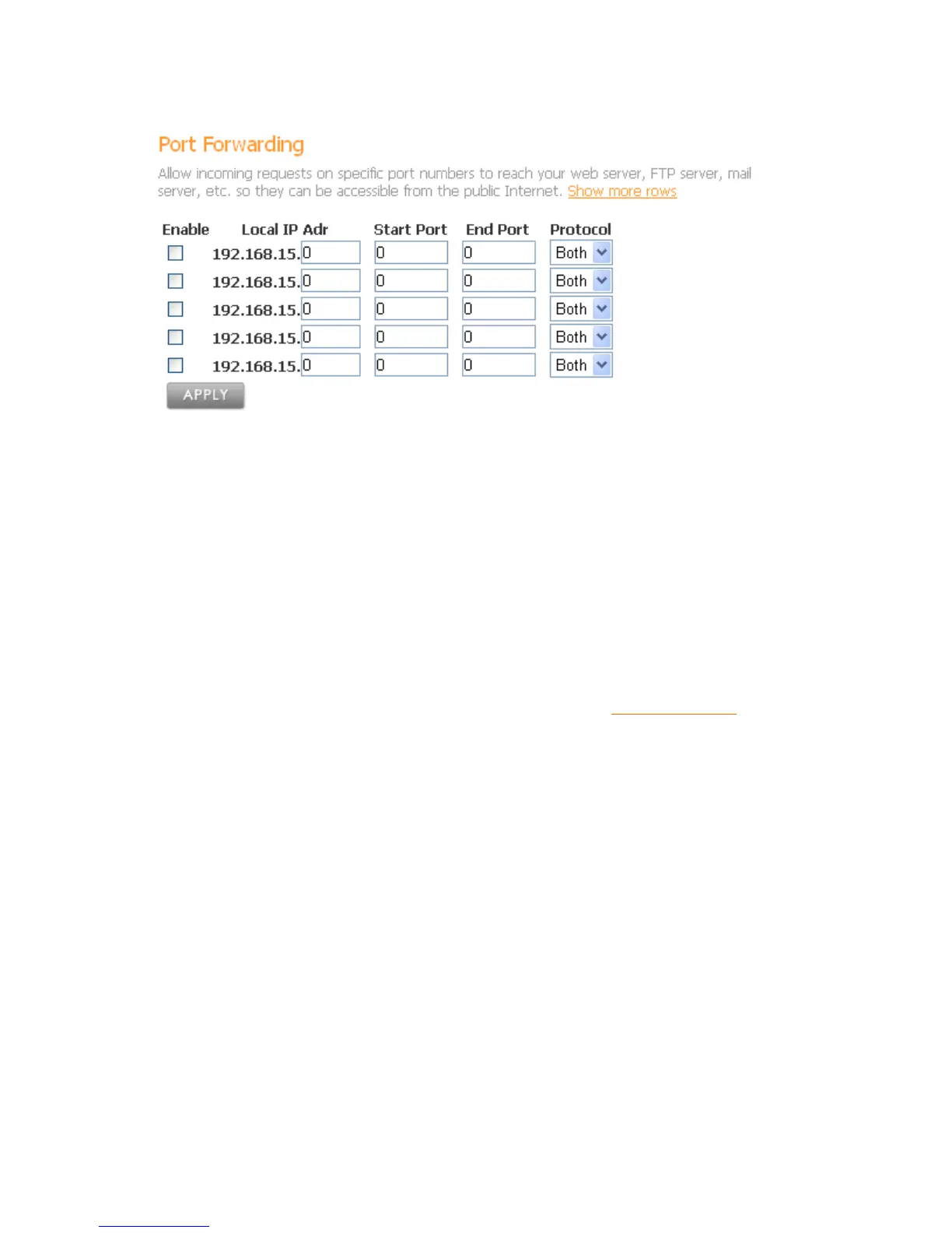 If you need to specify more than 5 port forwarding rules, click on the Show more rows>