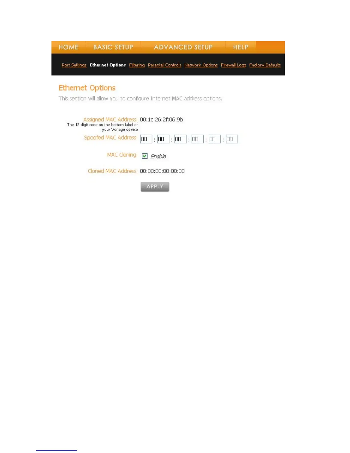 e MAC address of the device that is registered with your ISP in the Spoofed