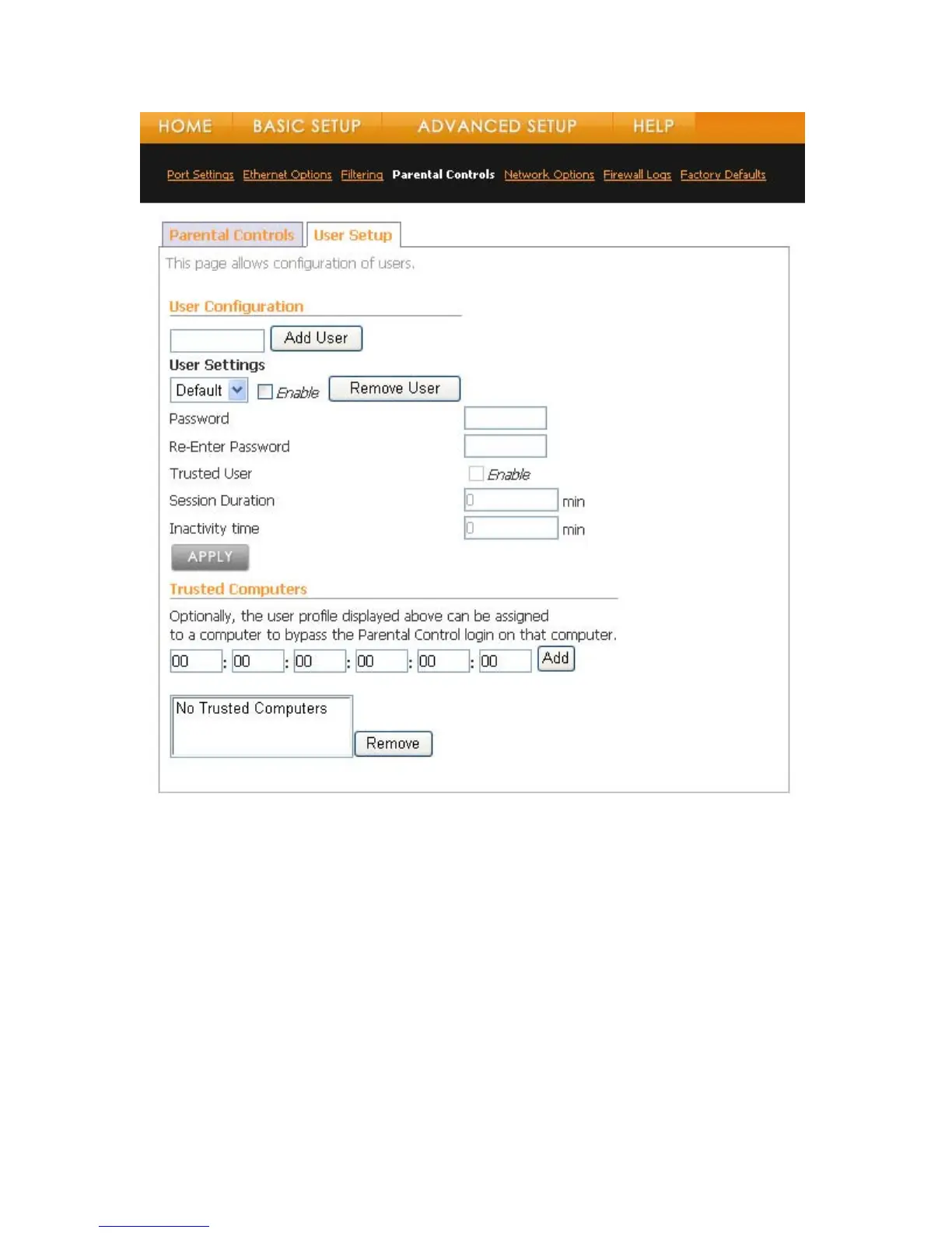 • Click the Add User button. The new User name will now appear in the User Settings