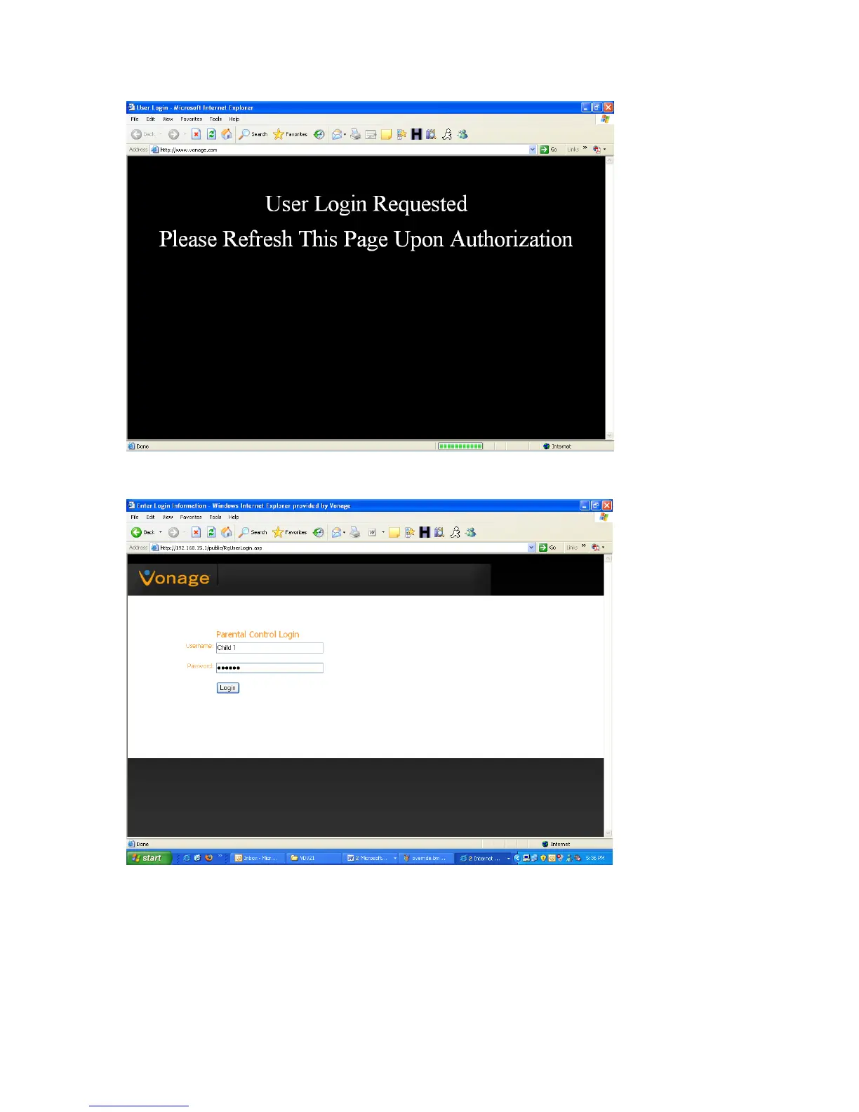 ame “Child 1” and the password we created “vonage”. n