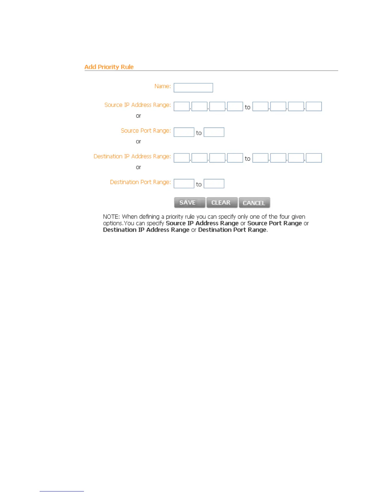 NOTE: When defining a priority rule you can specify only one of the four given options. You can
