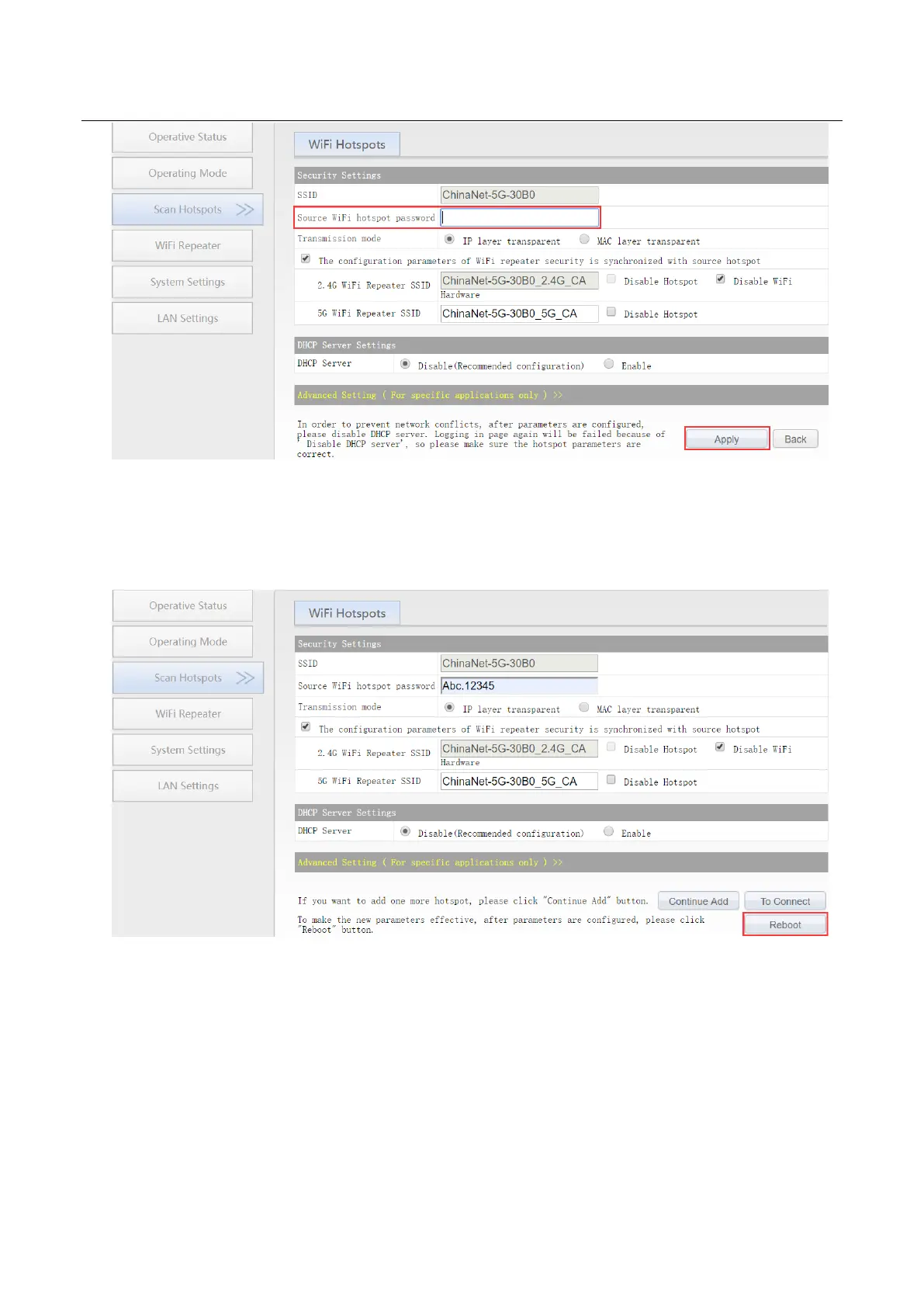 5. Click Reboot, VONETS module will connect to the configured WiFi hotspot automatically, if