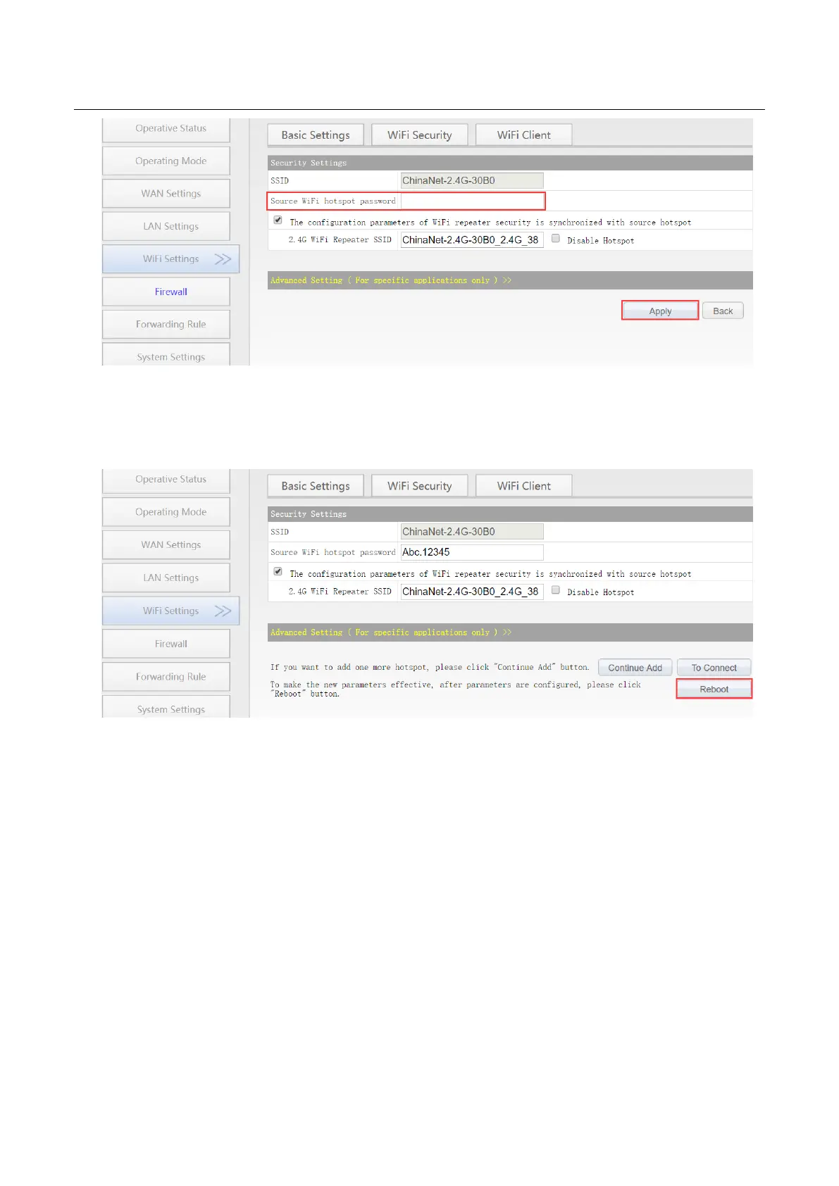 1. Revise WiFi name: Jump to “WiFi Repeater”---- “Basic Settings”, enter new WiFi name in