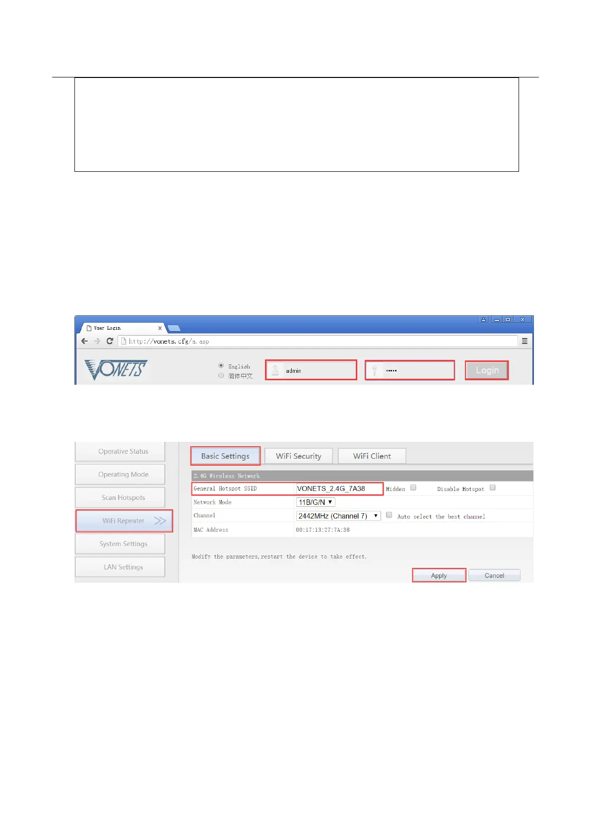 1. Log in to the configuration page http://vonets.cfg (or IP: 192.168.254.254you’re your