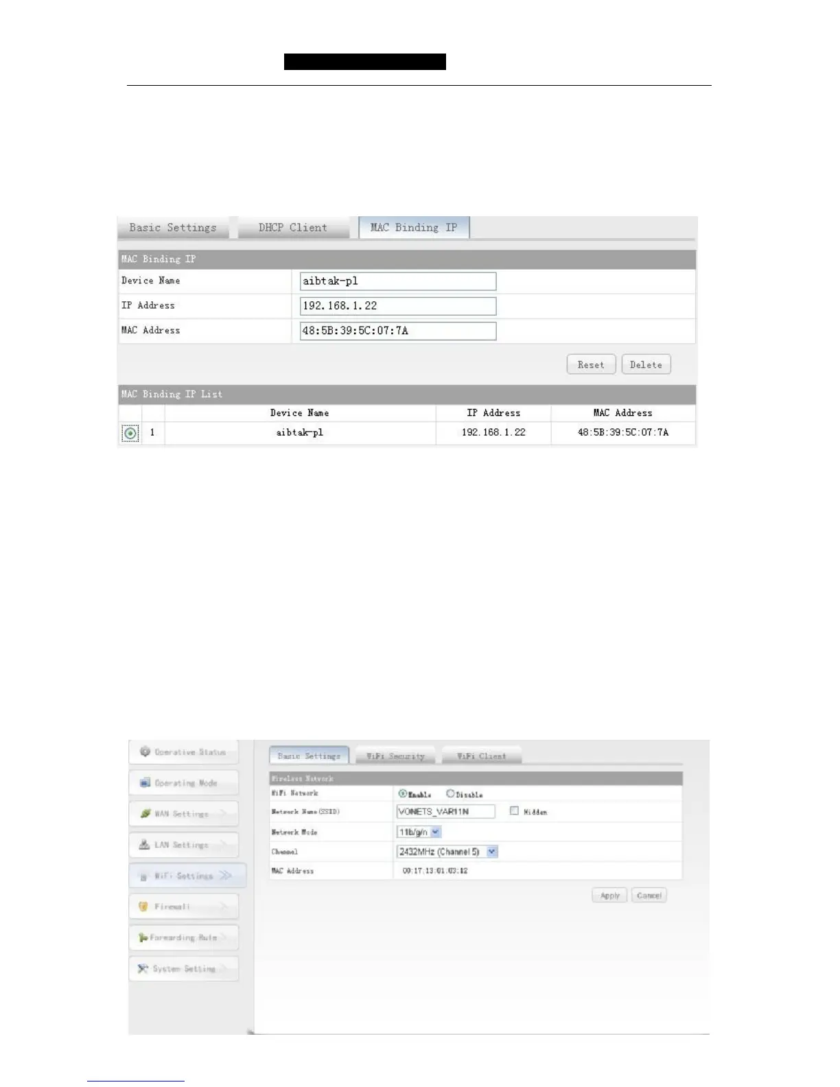 Choose WIFI Settings----Basic settings, you can see the following picture: