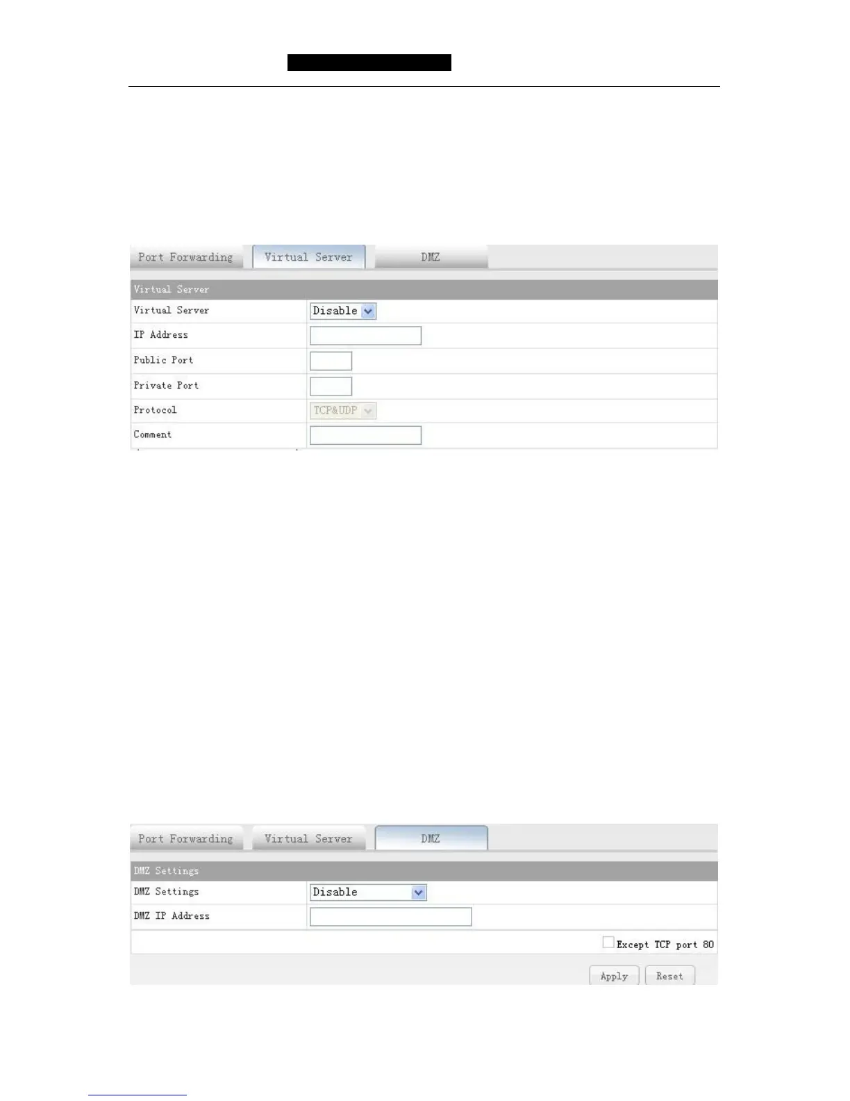 Ø Private Port: Set up the router service port open to the Internet, Internet users by