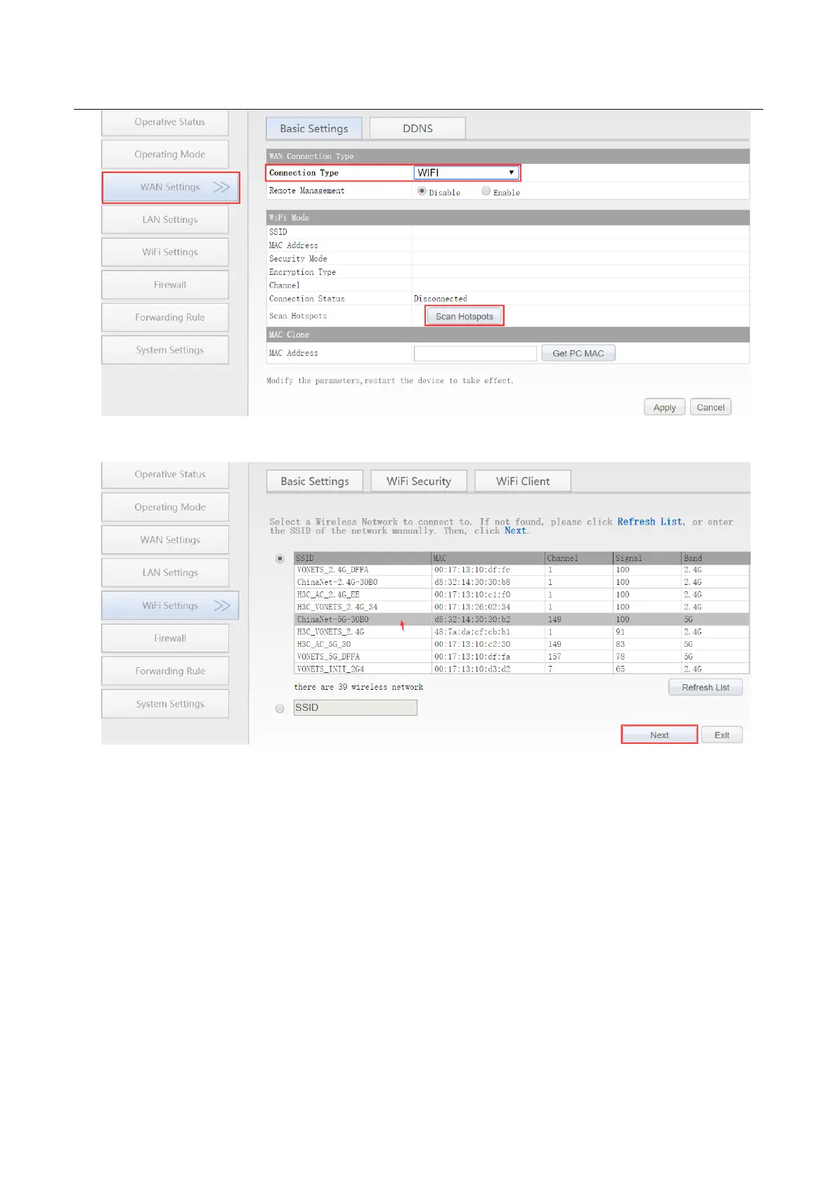 3. Input “Source wireless hotspot password”, click “Apply”