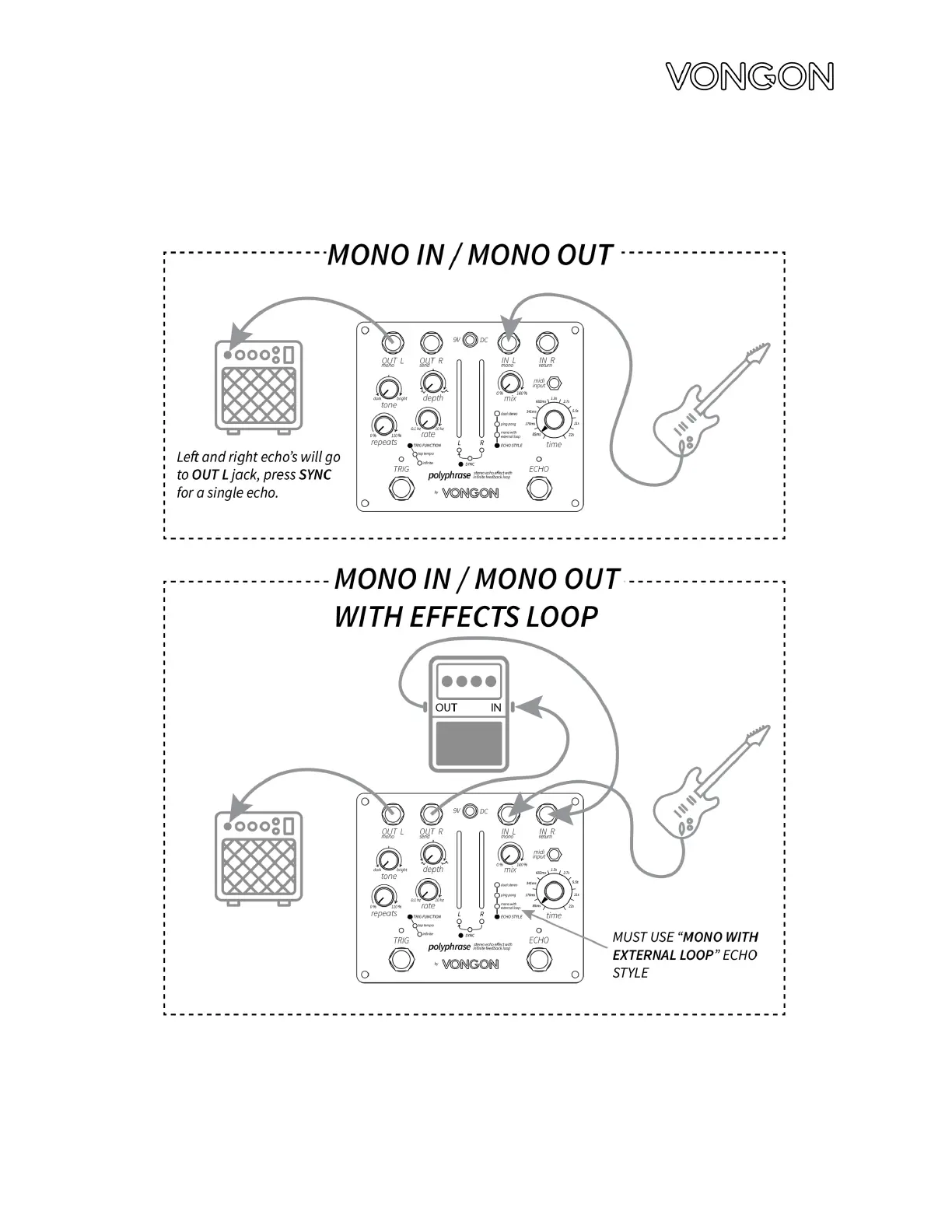 Vongon polyphrase - Mono Connections; Mono In; Mono Out; Mono In; Mono Out With Effects Loop
