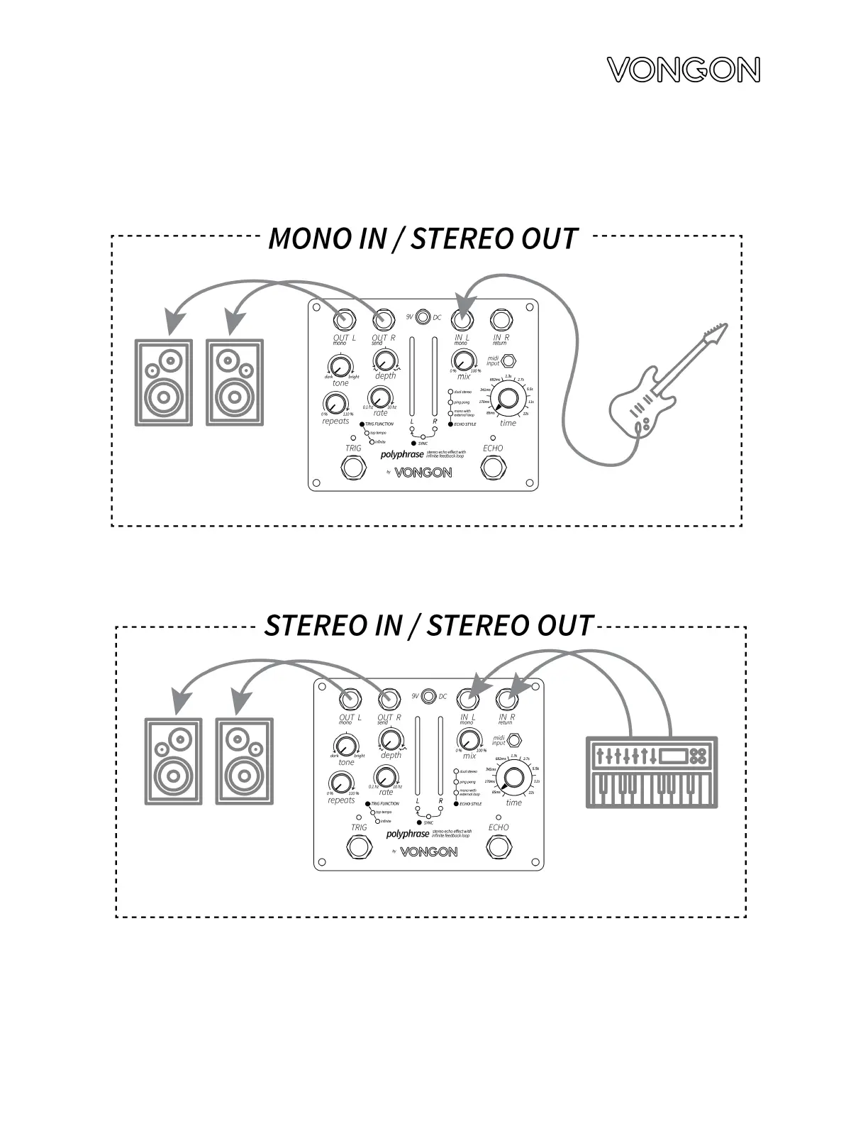 Vongon polyphrase - Stereo Connections; Mono In; Stereo Out; Stereo In; Stereo Out