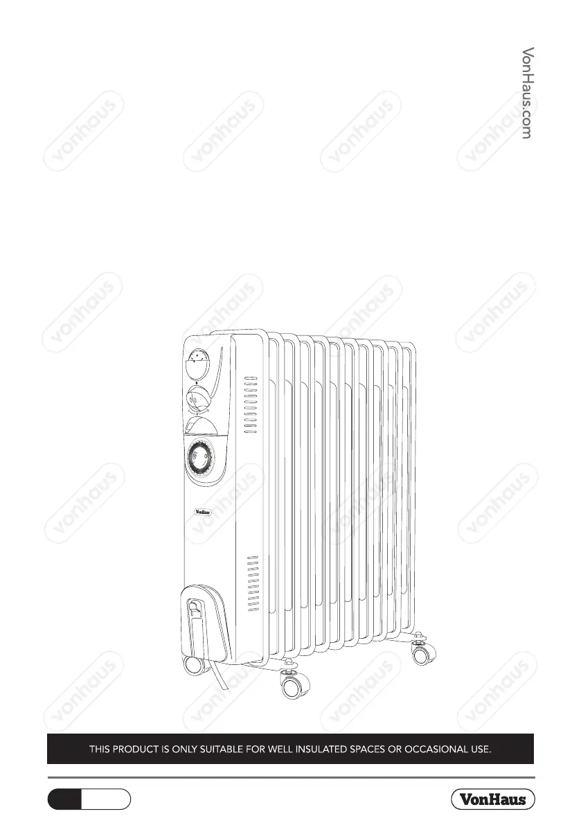 If your VonHaus Heater is not heating up, make sure it is connected to a mains power outlet and switched on. Check that the Thermostat Knob and Power Selectors are activated, and the switch on the Thermostat Knob is set to “I” for operation. Ensure the Radiator is upright and the fuse is in working condition by replacement. The input and output airflow grilles may also require cleaning.