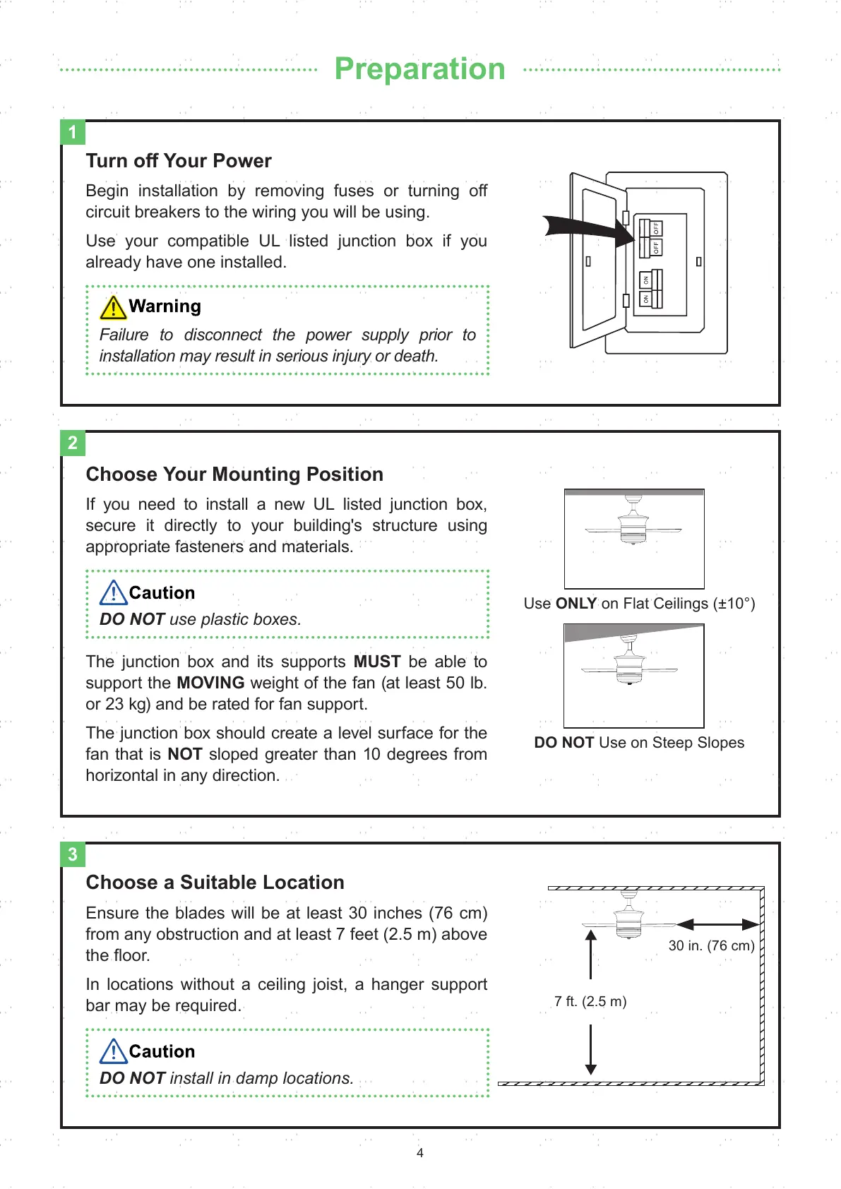 Ensure the blades will be at least 30 inches (76 cm)