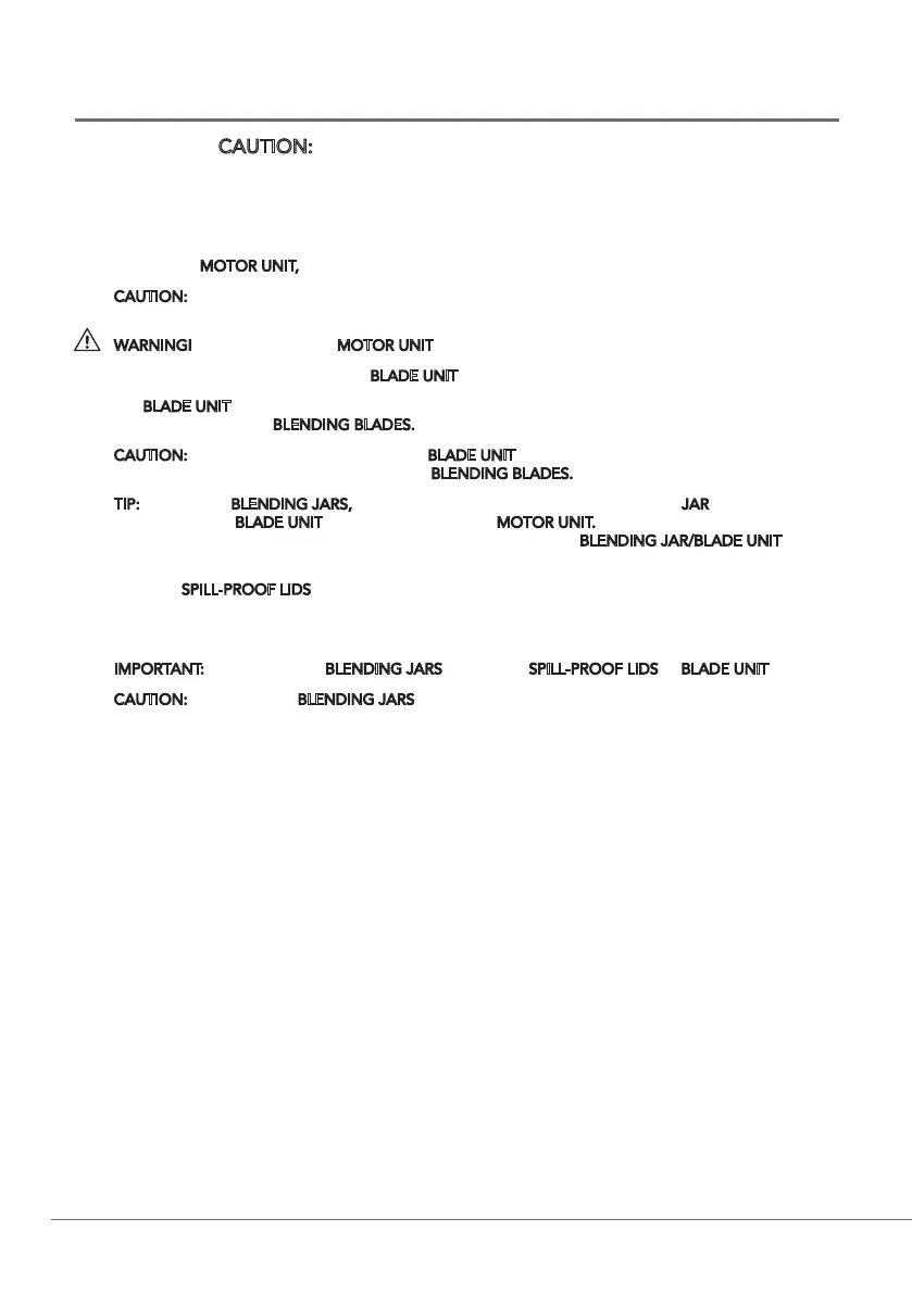 IMPORTANT: Always store the BLENDING JARS without the SPILL-PROOF LIDS or BLADE UNIT attached.