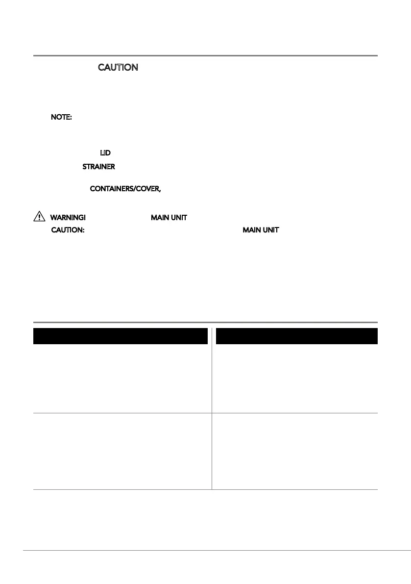 CAUTION: Avoid using abrasive cleaning utensils to clean the MAIN UNIT as these may scratch the