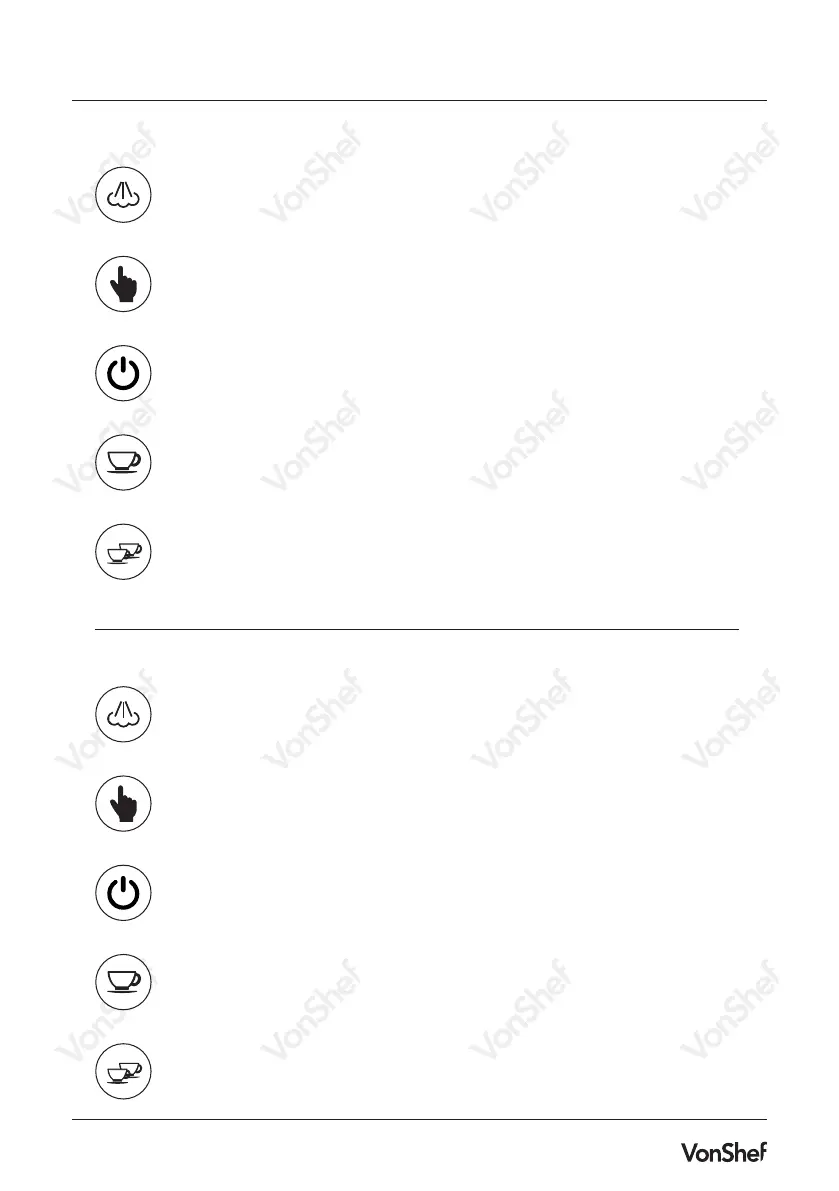 BOTÓN MANUAL: para un chorro continuo de agua caliente o café, presionad una vez.