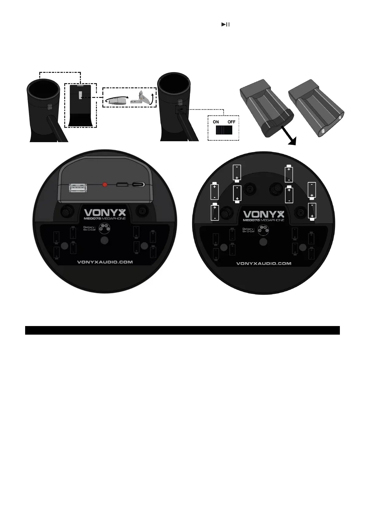 10. Als u de megafoon langere tijd niet gebruikt, verwijder dan de droge batterijen.