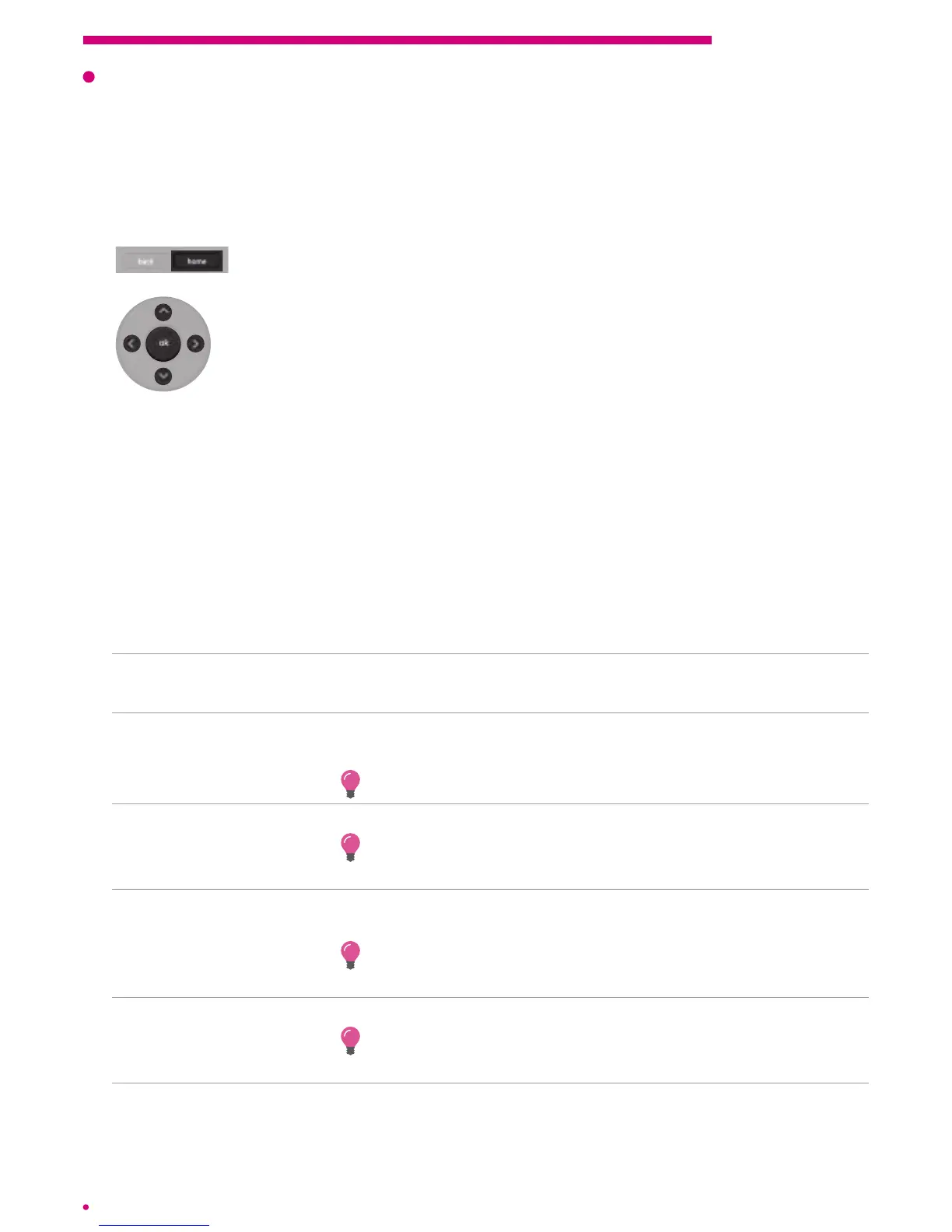 Use the arrow buttons on the central keypad of the remote control
