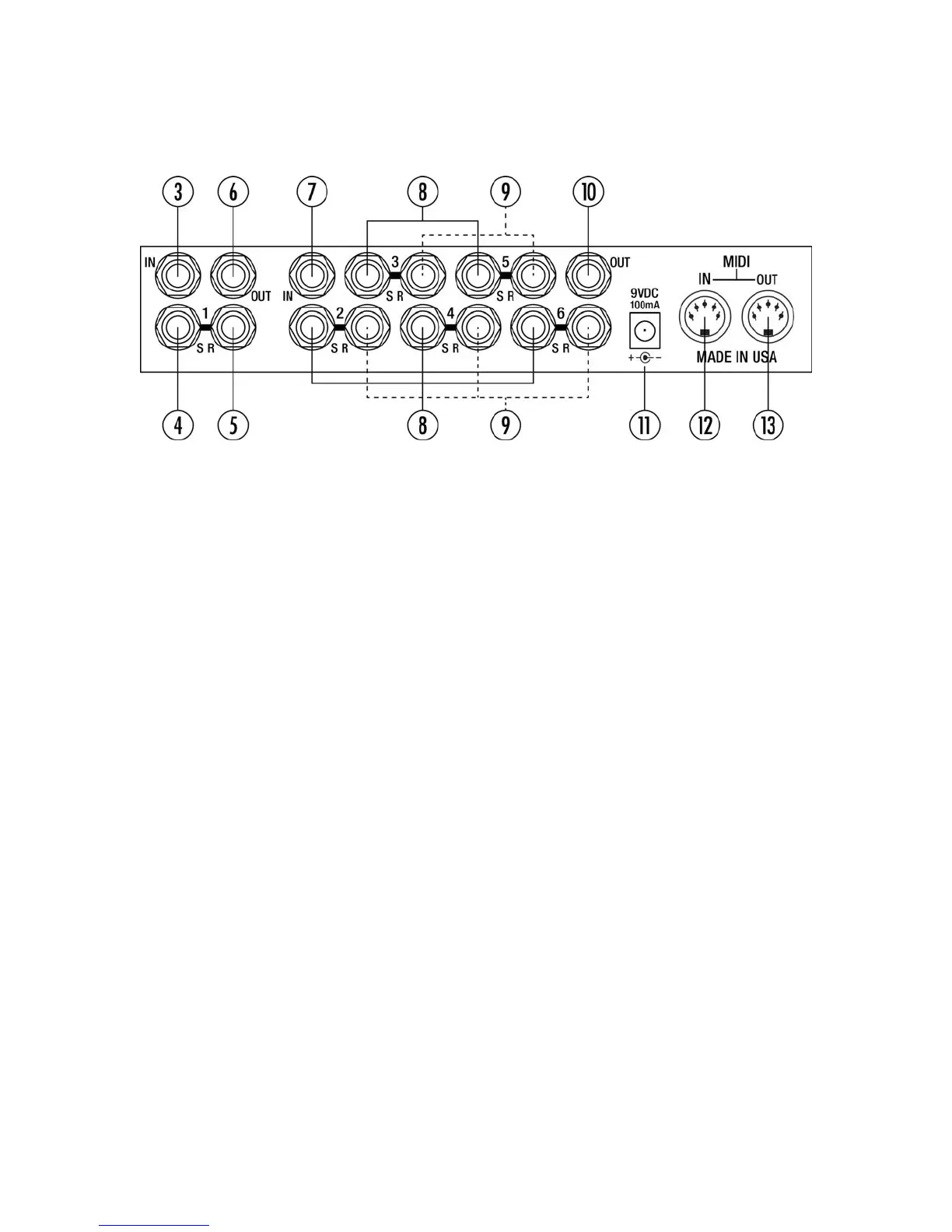9. Loops 2-6 R. Return of loops 2-6. Connect from effect outputs.