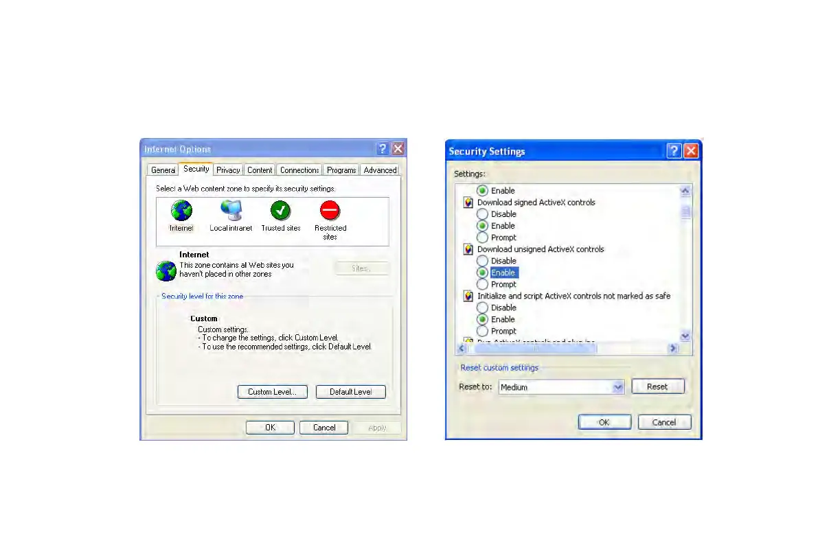 ③ Enable all the sub options under “ActiveX controls and plug-ins” refer to Fig 8-2