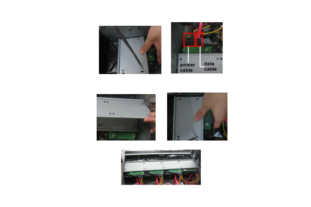 Step 3: Install other three HDD according to above-mentioned method. Then cover the upper iron bar and screw it firmly. Put the