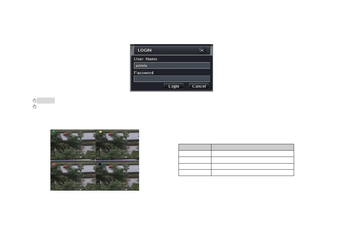 User can login and logout the DVR system. User cannot do any other operations except changing the multi-screen display once