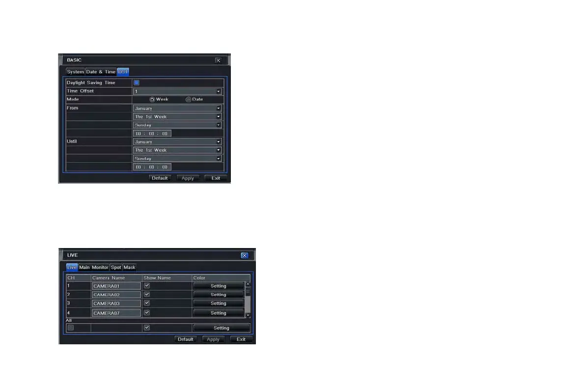 In this interface, user can setup camera name, adjust colors: brightness, hue, saturation and contrast.