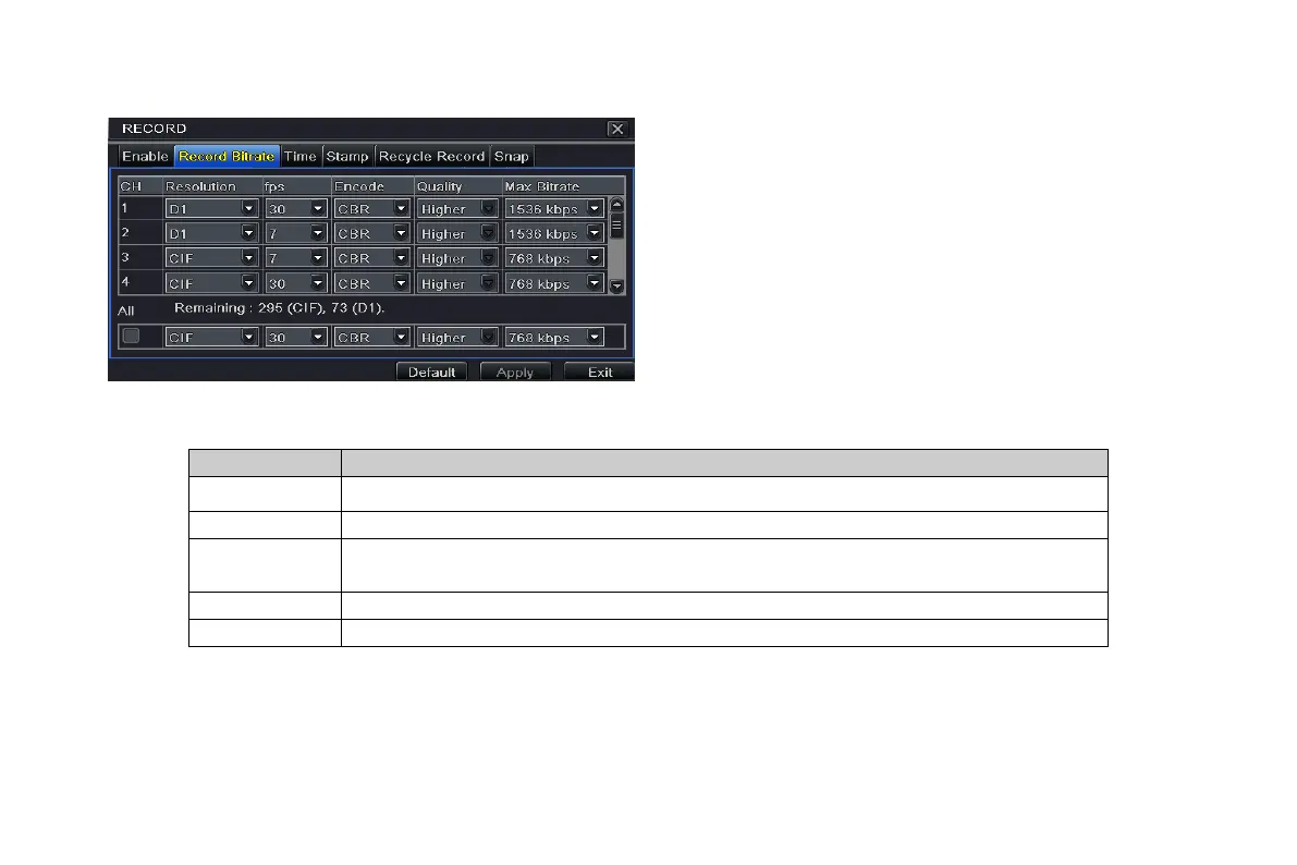 Quality The higher the value is, the clearer the recorded image is. Six options: lowest, lower,