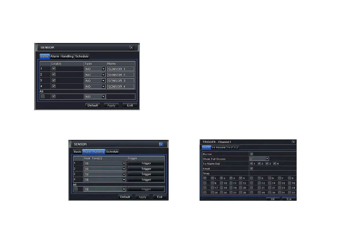 Step1: enter into system configurationalarm configurationsensoralarm handling; referring to Fig 4-20: