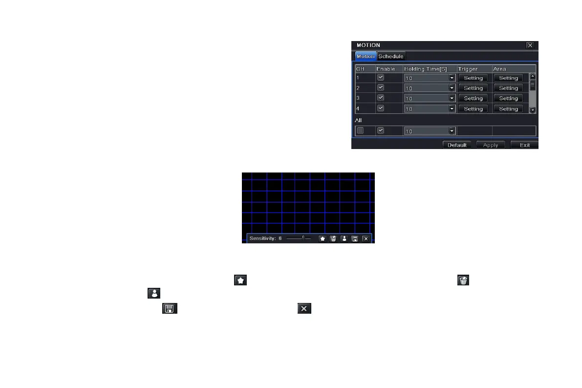 icon to test whether the sensitivity value and motion area are suitable accordingly(referring to