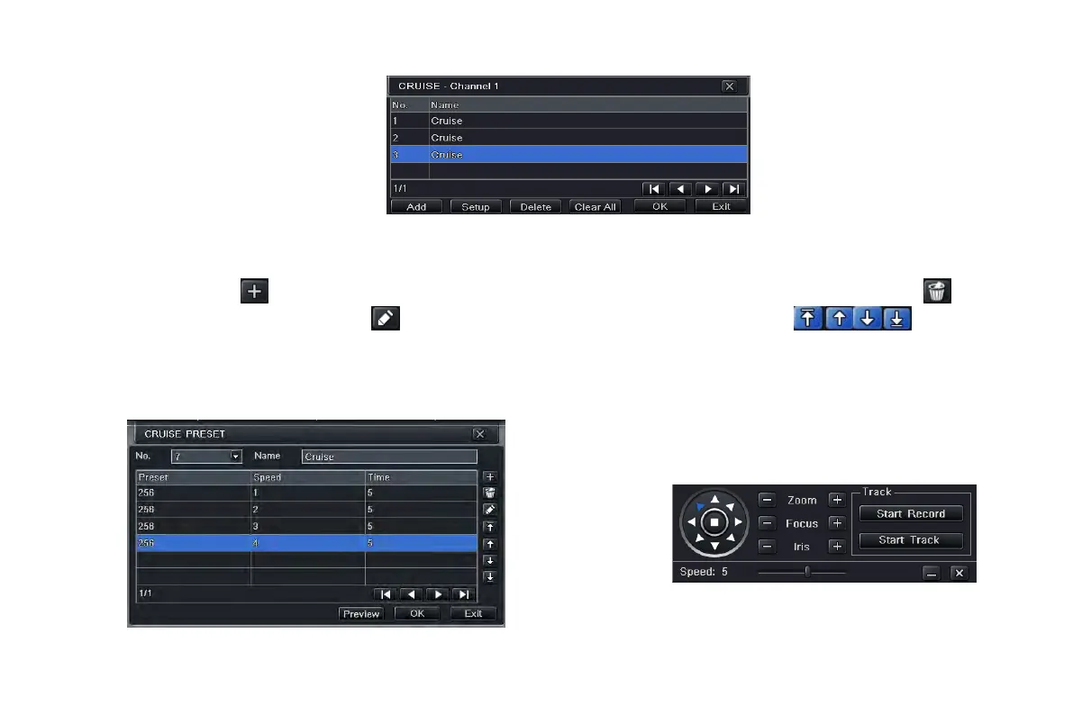 adjust the position of preset point. Click Preview button to preview the cruise line; click OK button to save the setting; click Exit
