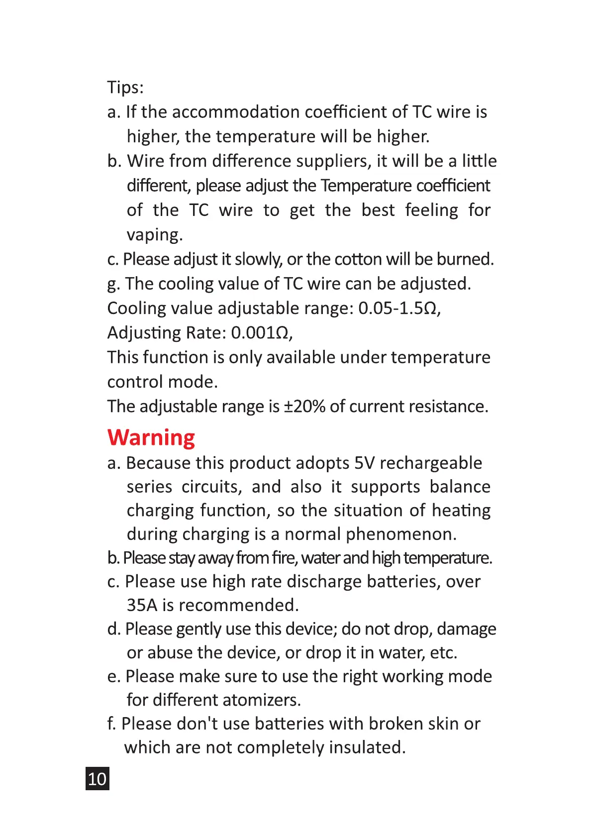 b. Pleasestayaway from fire, water and hightemperature.