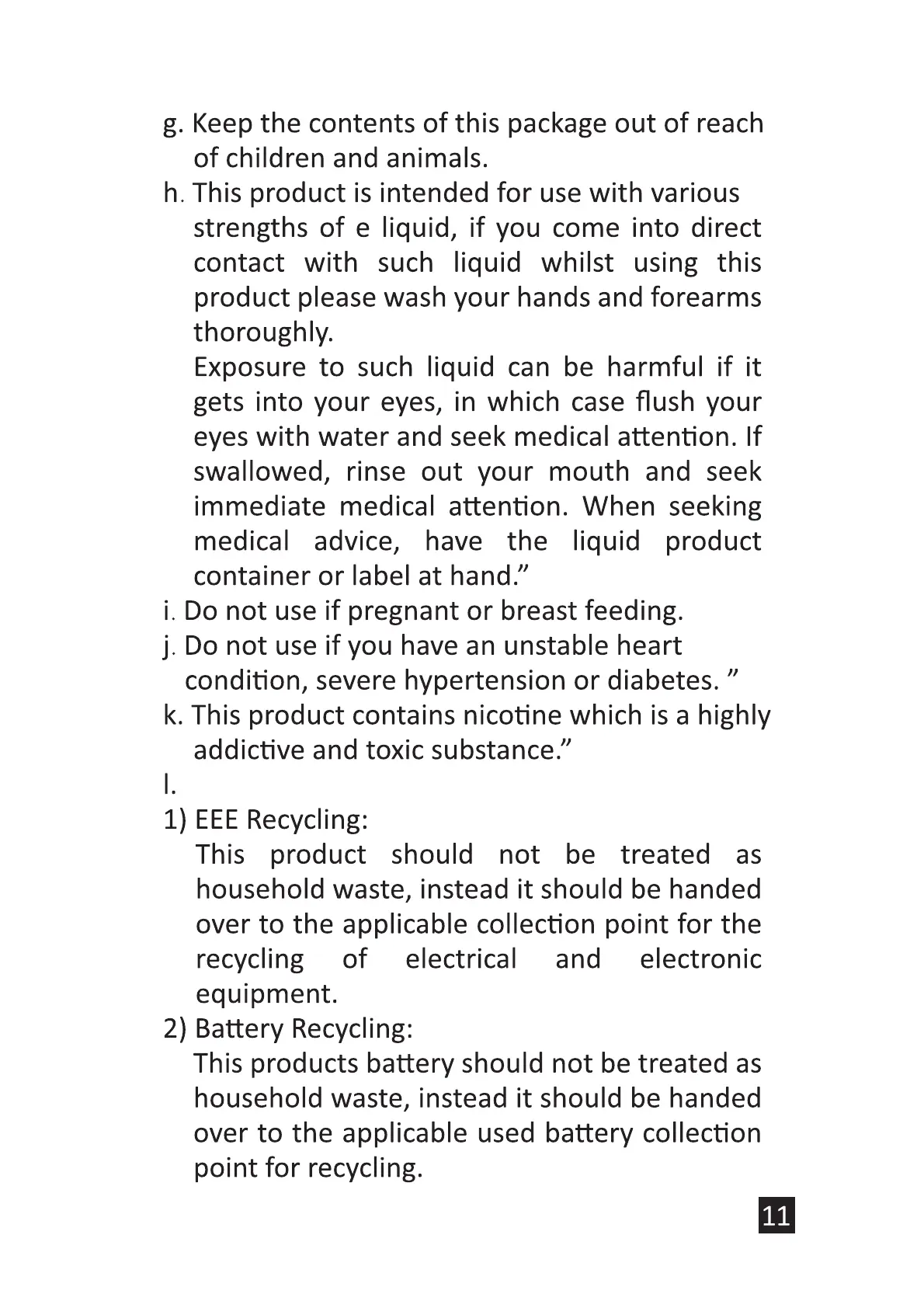 k. This product contains nicotine which is a highly