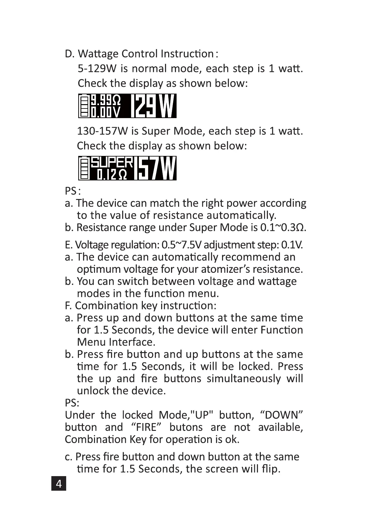 b. Resistance range under Super Mode is 0.1N0.3Q.