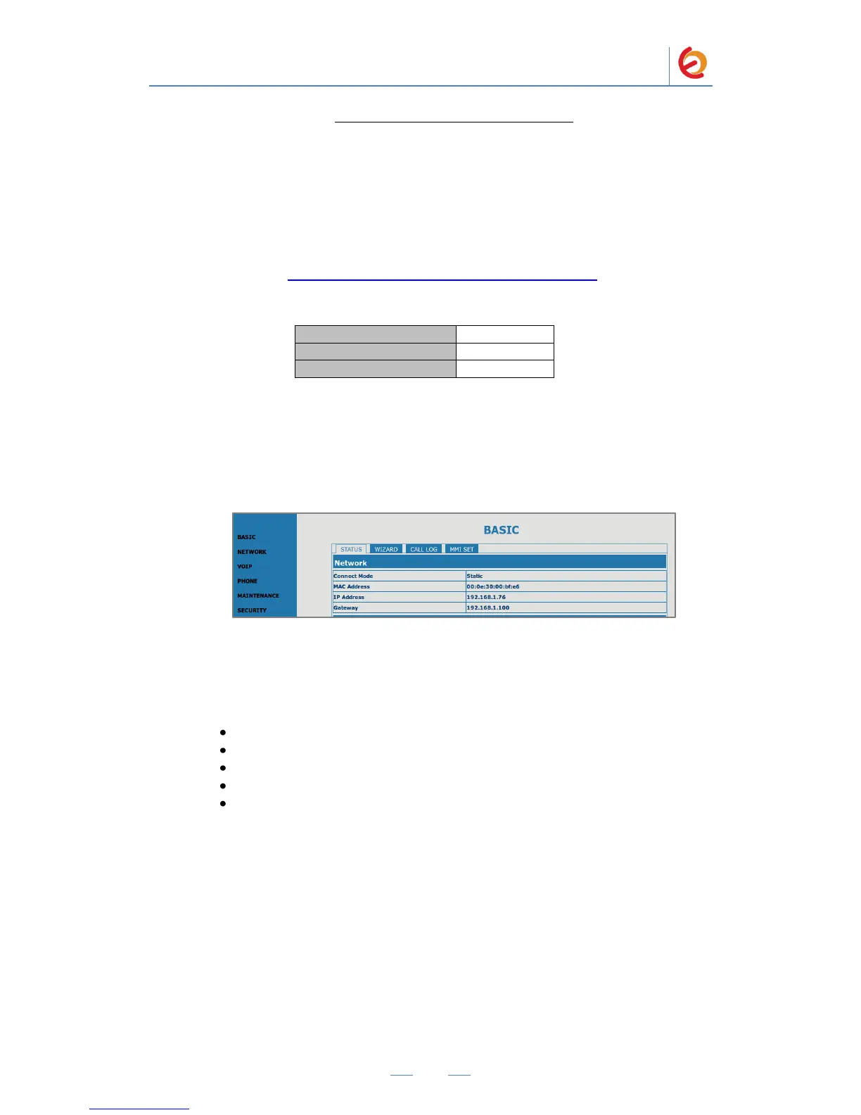 1. Log in to the Voptech VI2006 WebUI by pointing your browser to the Phone‟s IP