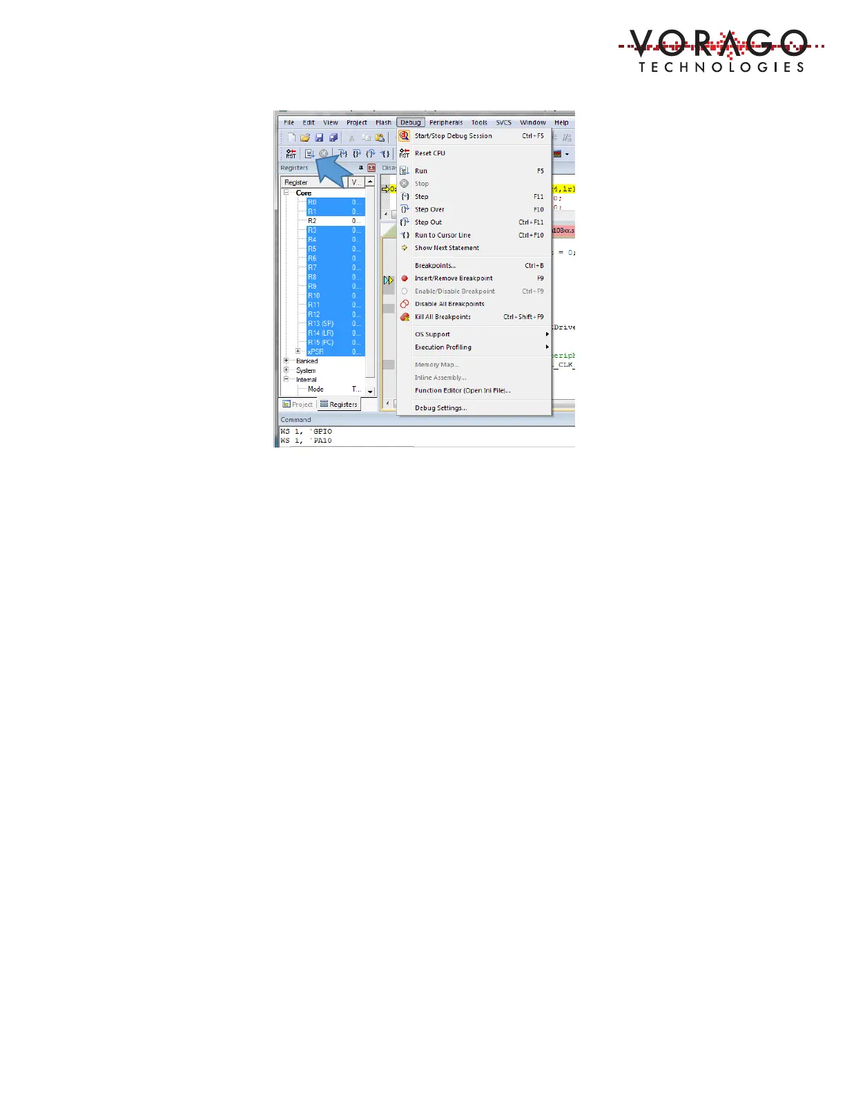 connected memories such as an FRAM via the SWD port. VORAGO has provided a specific