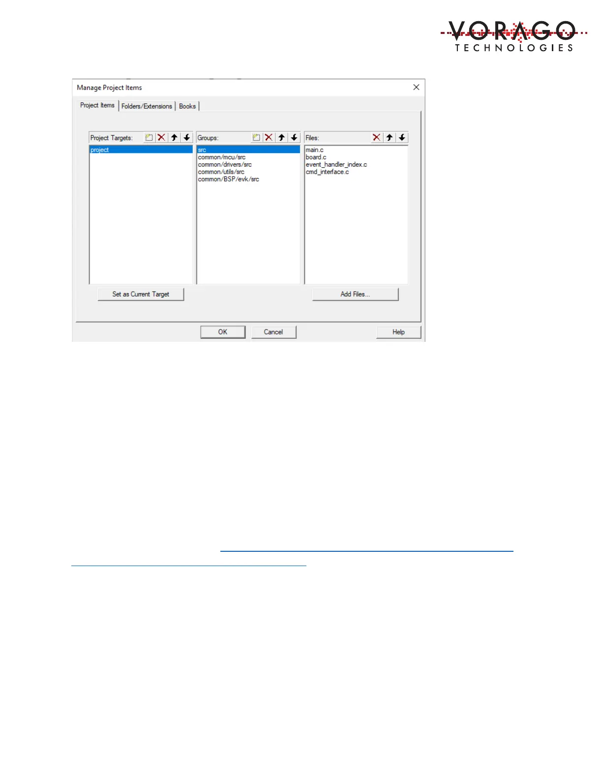 peripheral modules of the VA416xx MCU. The “src” group has files unique for this project