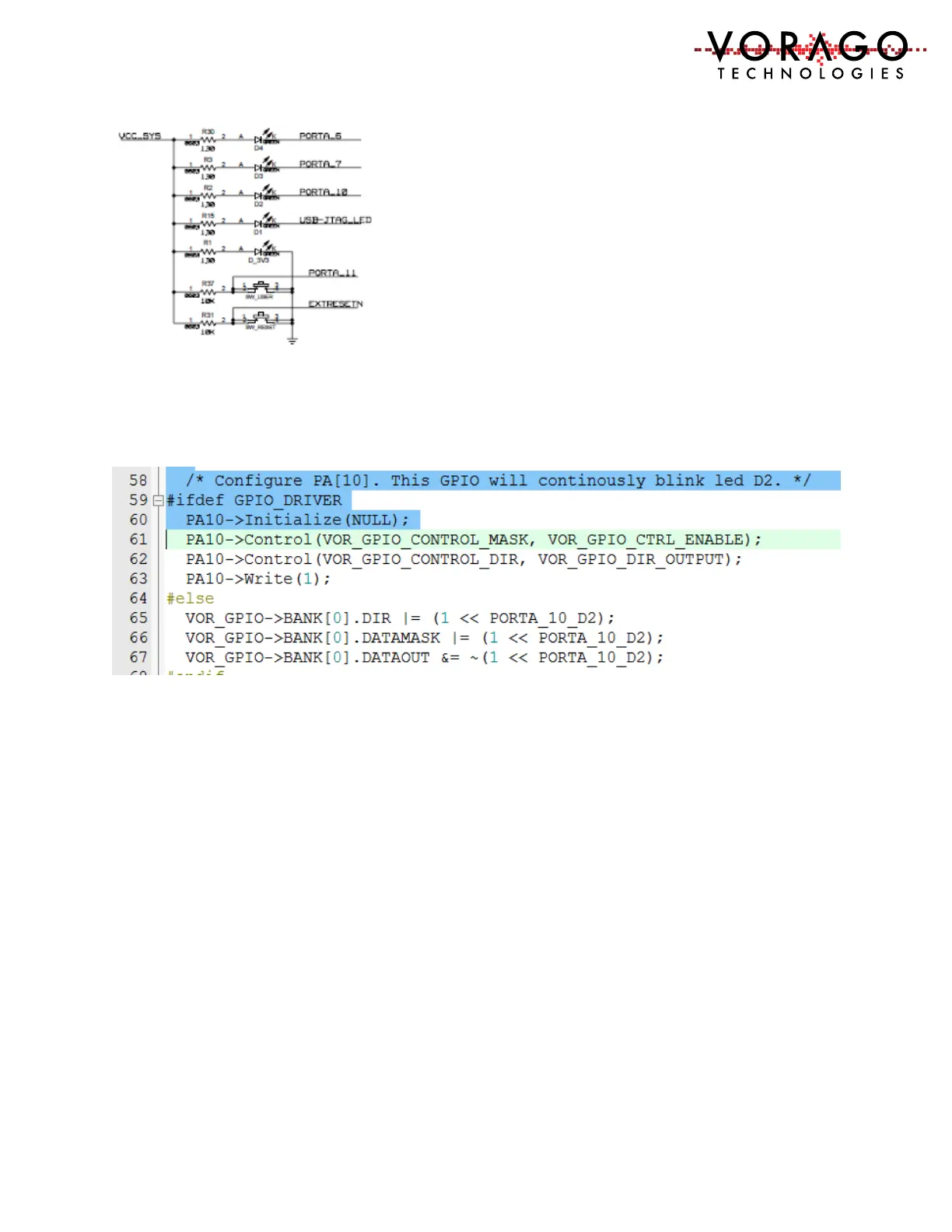 VOR_GPIO->BANK[0].DIR |= (1 << PORTA_10_D2) | (1 << PORTA_6_D4);