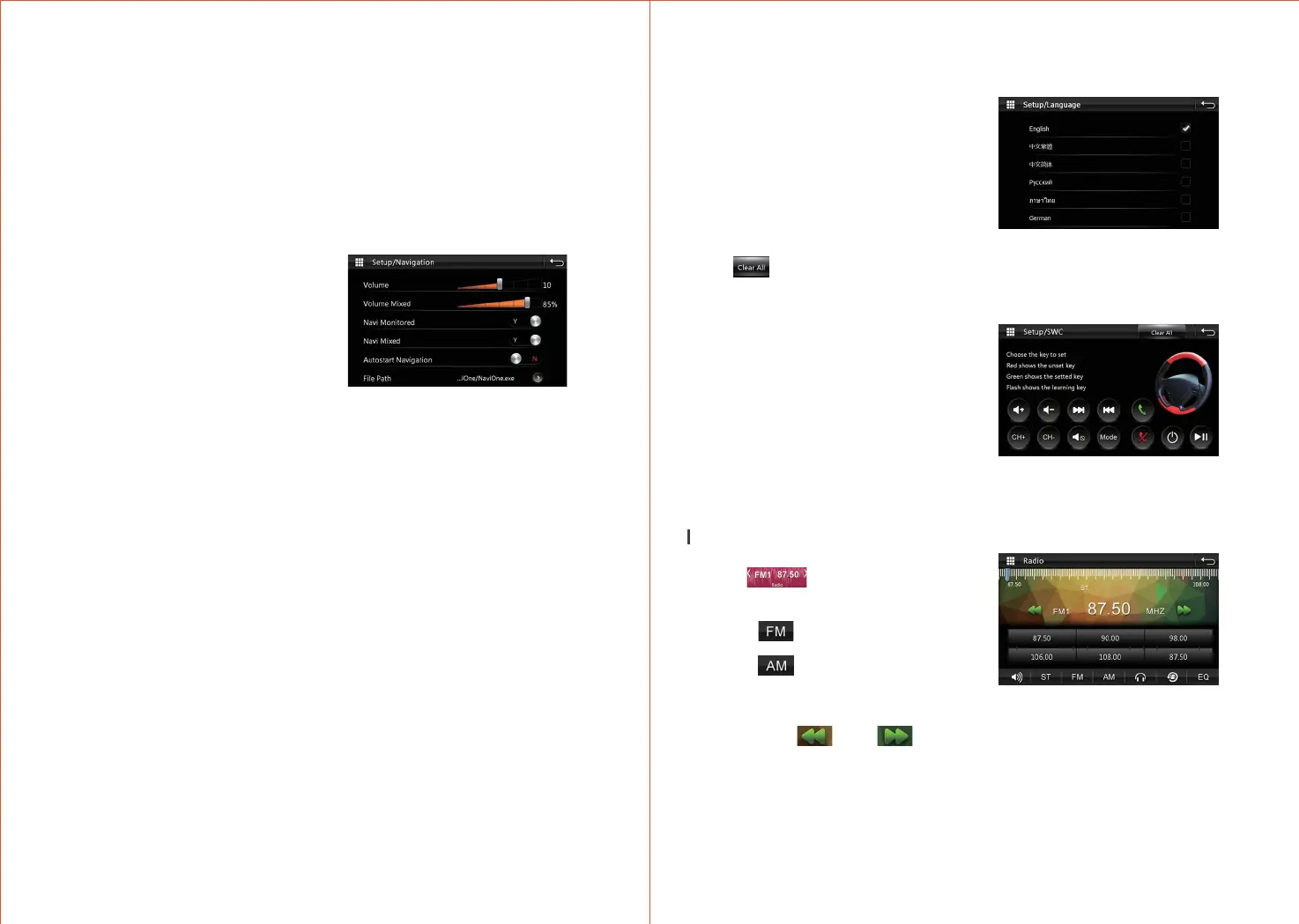 Short press “ ” and “ ” icon on the radio menu, forward or reverse search radio