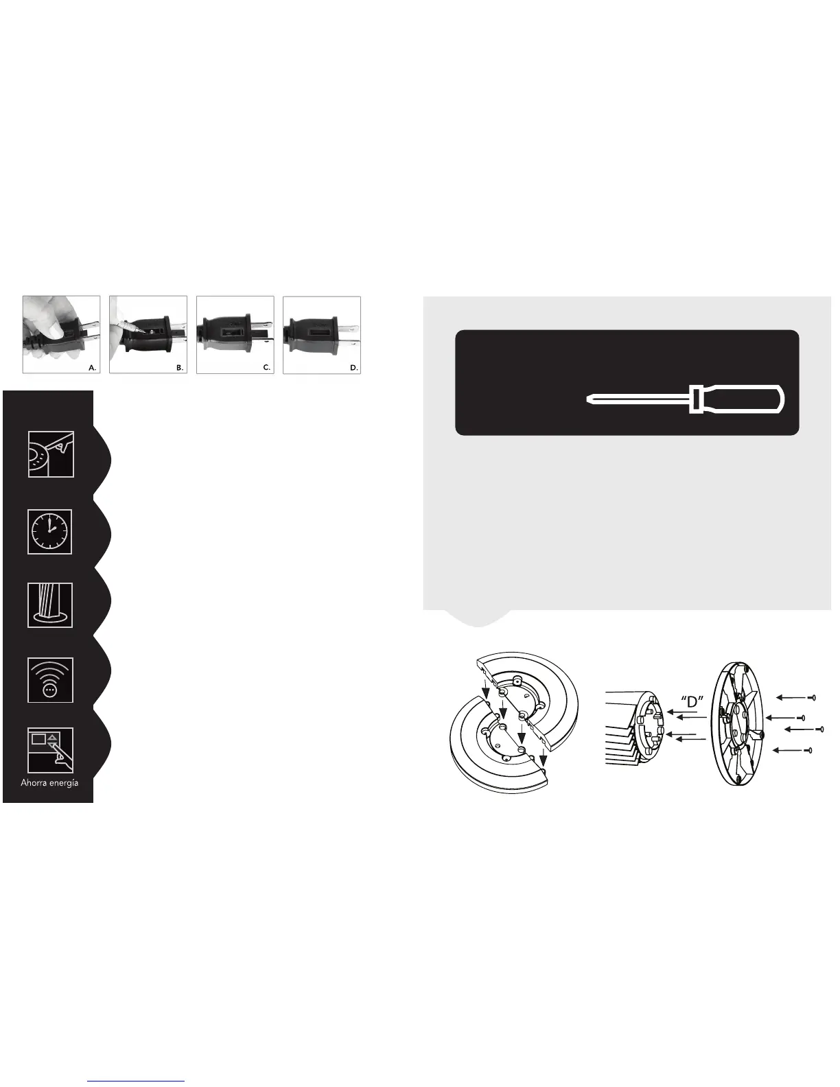 1. Ensamble las dos partes de la base. Coloque la parte de la base que