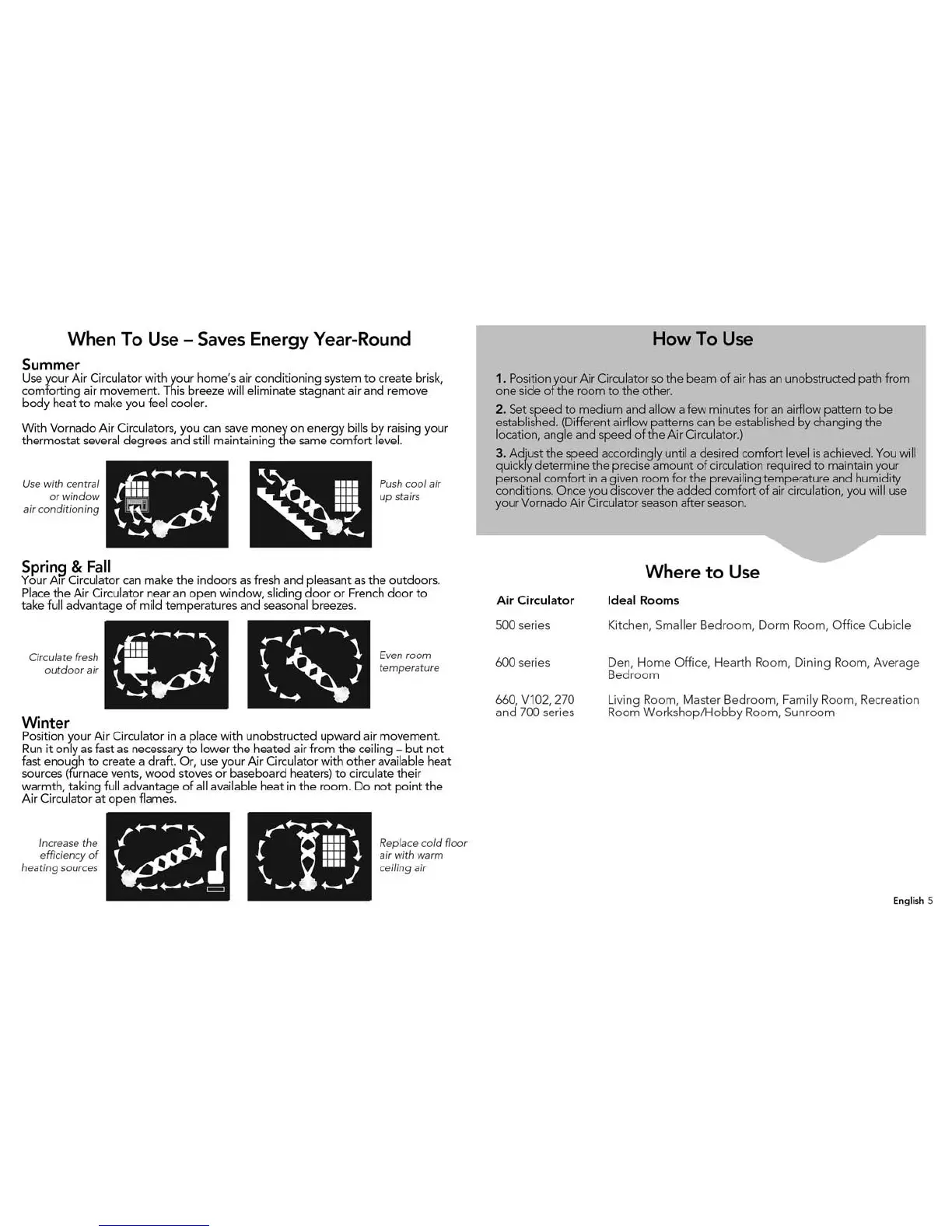 Vornado VORTEX ACTION - Seasonal Usage and Operation Guide; Optimizing Airflow Year-Round; How and Where to Use