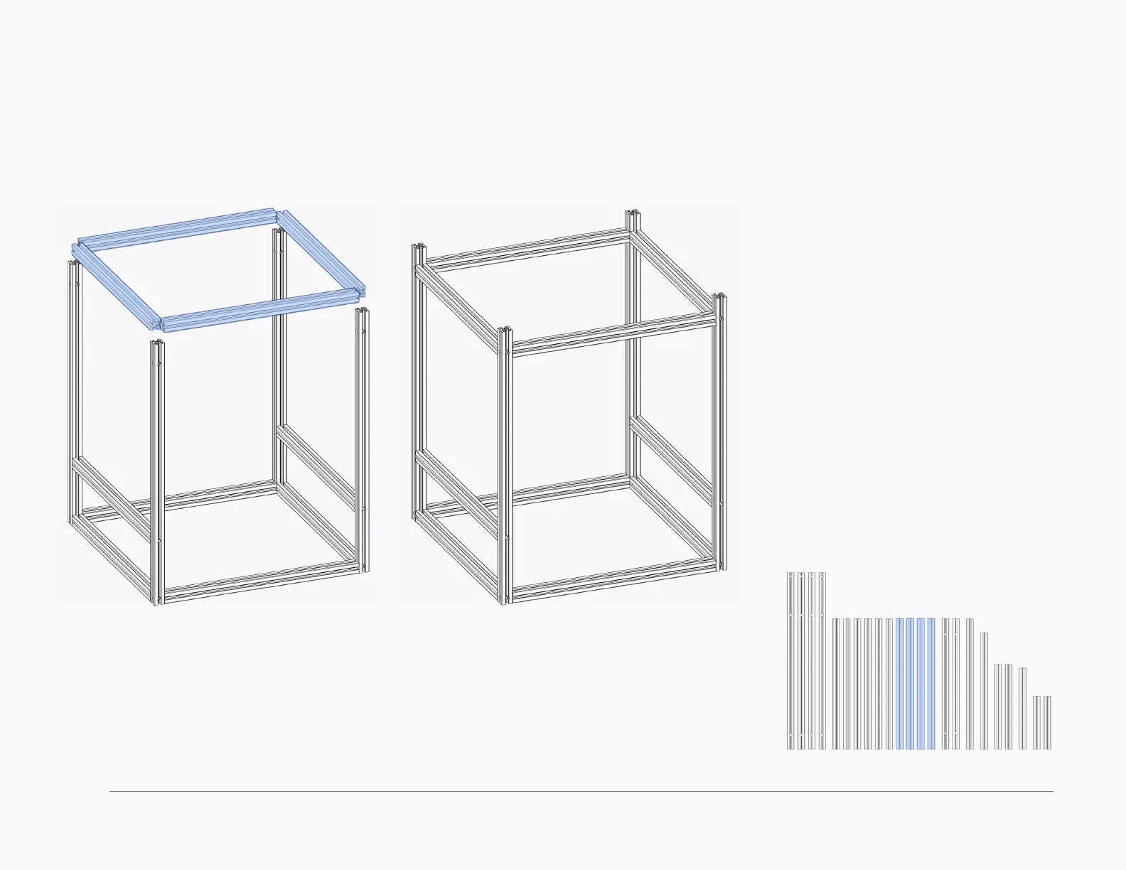 The bottom extrusions are spaced 320mm from