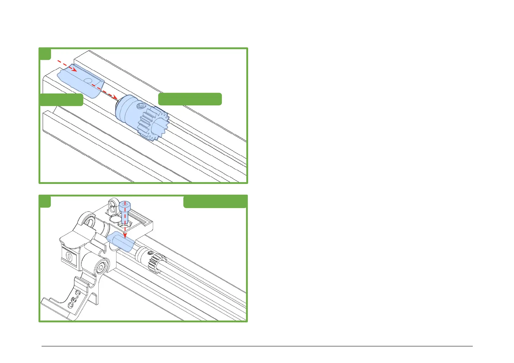 orientation, gear side first. Then slide a roll-in T Nut into the top