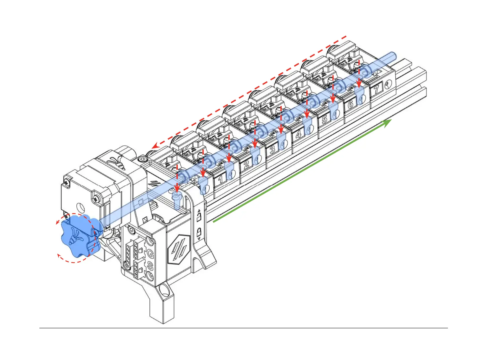 Once all the Filament Blocks are tightened and the Drive Shaft