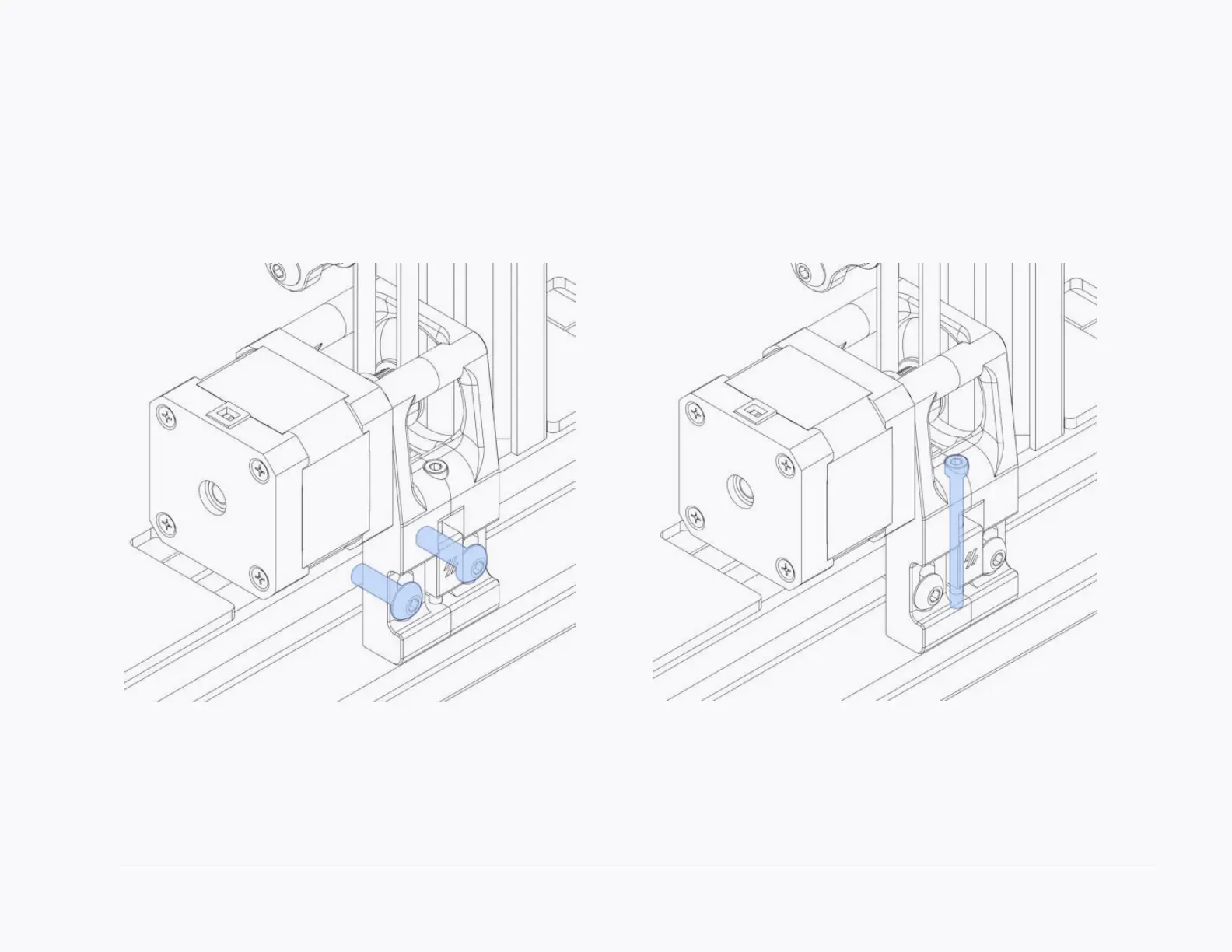 The motor mounts for the “X” and the “Z” motors have build in tentioners.