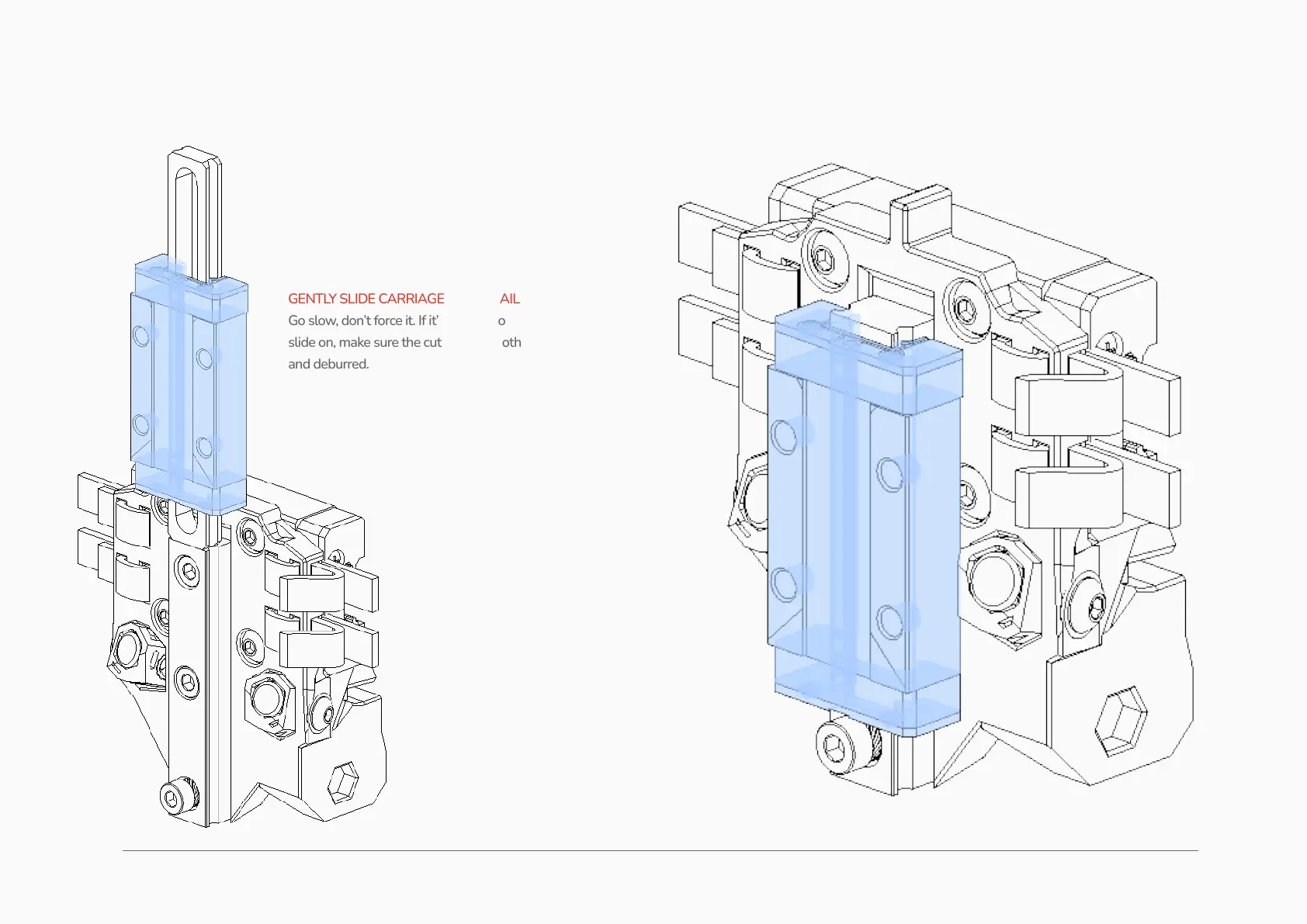GENTLY SLIDE CARRIAGE ON TO RAIL