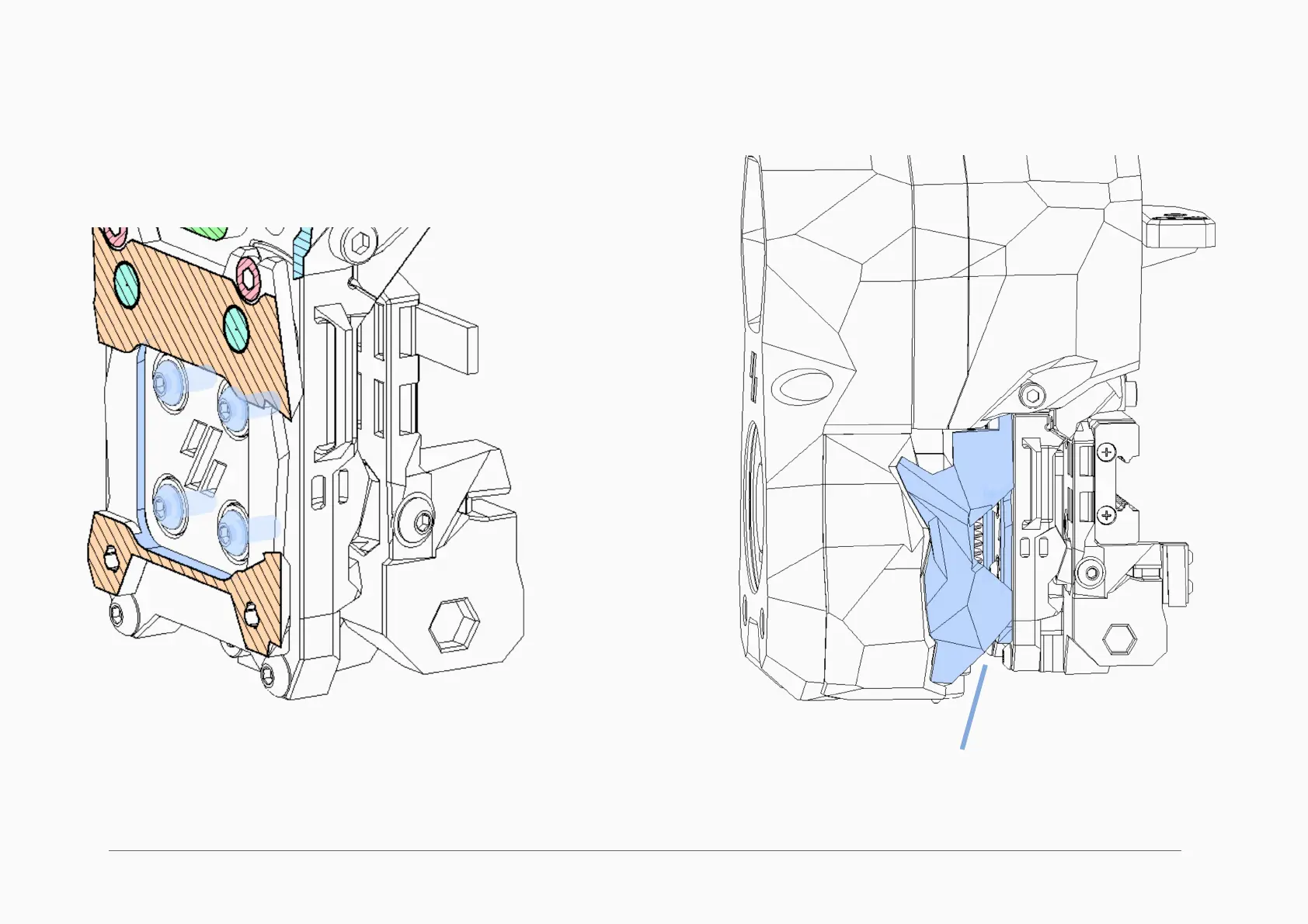 The toolhead rear rests on the lowermost 2 screws, but must clear the four