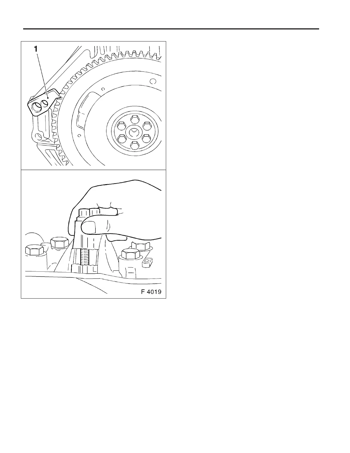 4. Lock flywheel or drive disc with KM–652 (1) and remove